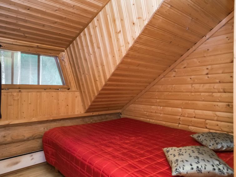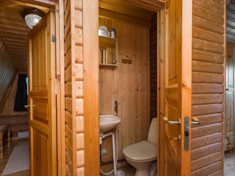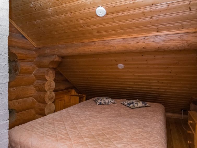 Log cabin 1990, kitchen, a large living room. Ground floor: bed room (sliding door) bed 120 cm wide, lounge with fireplace sofa bed, sauna (electric sauna stove), washroom, toilet, veranda.