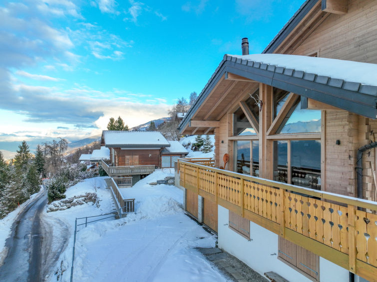 "Ratatouille", 6 rom hytte 210 m2 på 3 etasjer. Vakkert og smakfullt møbler: stue/spisestue med, åpen peis og satelit-TV. Åpent kjøkken (stekeovn, oppvaskmaskin, 5 keramiske kokeplater, brødrister, vannkoker, mikrobølgeovn, elektrisk kaffemaskin, Internet(Nespresso), ekstra, raclettegrill (ost)) med bar. El-oppvarming. I underetasje: stue med, satelit-TV. 1 rom med, 1 x 2 køysenger (90 cm, lengde 200 cm). 2 rom, hvert rom med 2 senger (90 cm lengde 200 cm). Bad/WC, dusj, sep. WC. øverste etasje: 1 rom med 2 senger (90 cm lengde 200 cm). Dusj/WC. Naturstengulv. Stor balkong, beliggenhet mot nord og beliggenhet mot vest, liten balkong, østvendt beliggenhet terrasse, beliggenhet mot vest. Terrassemøbler, grill, liggestoler. Meget vakker utsikt av fjellene og dalen. Fasiliteter: vaskemaskin, tørketrommel, høy barnestol barneseng, hårføner. Internett (trådløs LAN [WLAN], gratis). Garasje (2 Biler), høyde 195 cm, bredde 275 cm. Vennligst merk: røykfritt hus. Max kjæledyr / hund tillatt 1 kjæledyr / hund tillatt.