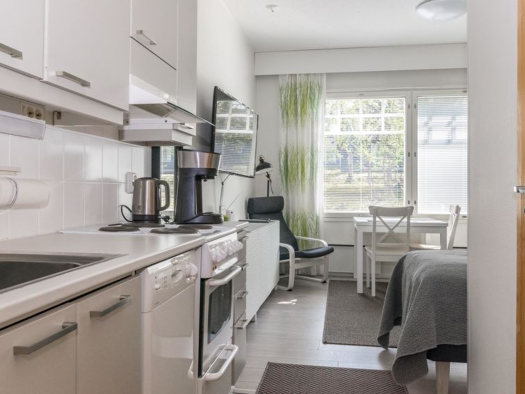 In a 25-square-meter apartment, there is a kitchen/living room, a washroom/toilet, a sauna and a small storage room. Common ski maintenance room in Outapailakka-apartment premises. Renovated in 2017.