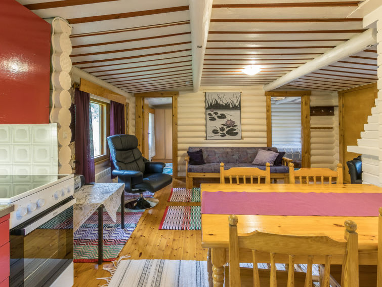 A seperate log cottage located 165 km north of Rovaniemi, in Ylläsjärvi village. Built 1985. Combined living room kitchen with sofabed, 2 x bedroom with double bed and sofabed, wood warmed sauna, terrace, toilet. Access to sauna and toilet through terrace. Final cleaning is included in prices. Bed linen available on order. Pets are not allowed. Reservations start at 16.00 and end at 11.00 (also in weekend reservations).