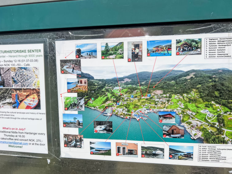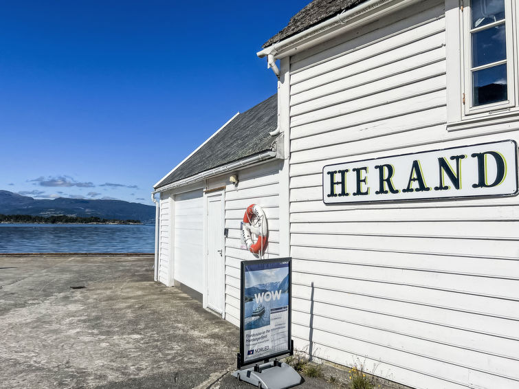 Sertifisert fiskehus (opptil 18 kg fisk) "Rød Hytte". 800 m fra sentrum av Herand, 54 km fra sentrum av Odda, 106 km fra sentrum av Bergen, ved en høyde, 50 m fra sjøen. Badebrygge bading. Privat: uberørt tomt 1'000 m2 med trær. Bord for bearbeiding av fisk. Tilgjengelig: kano (ekstra). Motorbåt (må bestilles), Robåt. 300 m lang ujevn Tilgang med bil hele veien. 50 m gangsti til hbrukt. Parkering (for 2 biler) ved hbrukt i 50 m avstand. Butikk 800 m, bussholdeplass "Sævare" 500 m, togstasjon "Voss" 63 km, ferje "Bergen" 106 km, småstenstrand 50 m. Sportsfiske 50 m. Vennligst merk: fiske (tillatelse krevs).