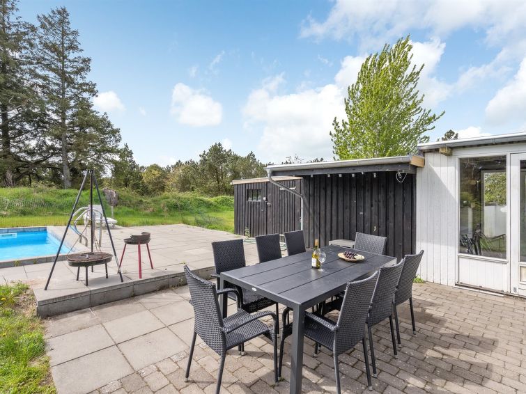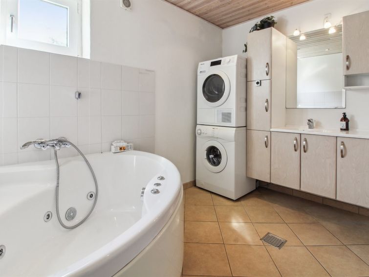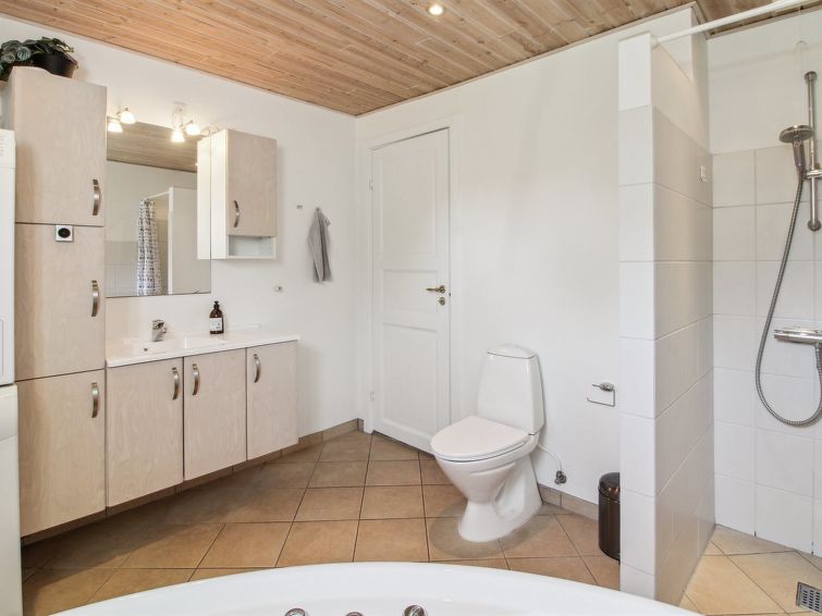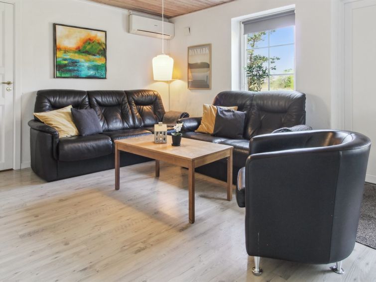 "Rea" - 5km from the sea in Western Jutland", 4 rom hus 152 m2. Passer for 10 voksne + 1 barn. Stue med, TV, radio og DVD. 1 rom med, 1 dobbeltseng. 1 rom med, 1 dobbeltseng. 1 rom med, 1 dobbeltseng. 1 rom med 2 senger. Kjøkken (stekeovn, oppvaskmaskin, 4 keramiske kokeplater, mikrobølgeovn). Dusj/WC, boblebad. øverste etasje: 1 rom med, 1 dobbeltseng. Fasiliteter: barneseng (ekstra). Internett (trådløs LAN [WLAN]). Max kjæledyr/små hunder tillatt 2 kjæledyr/små hunder tillatt.