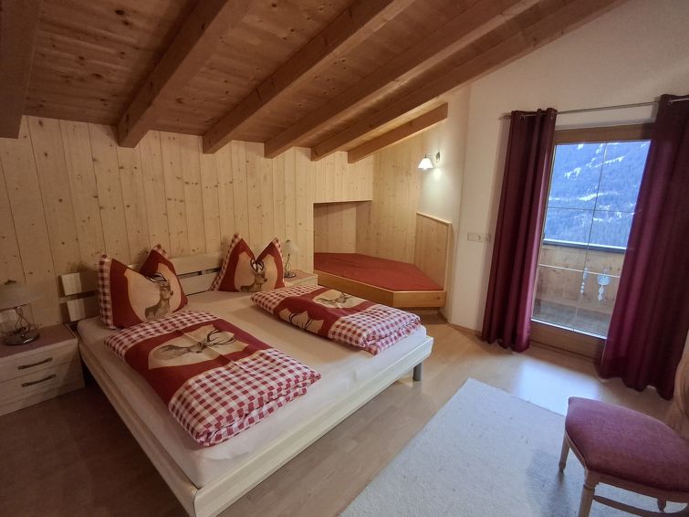 "Reichegger", 3 rom hus. Stue/spisestue med, spisehjørne, satelit-TV og radio. Utgang til balkongen. Åpent kjøkken (stekeovn, oppvaskmaskin, 4 keramiske kokeplater, brødrister, vannkoker, mikrobølgeovn, frys, elektrisk kaffemaskin). Sep. WC. øverste etasje: 1 rom med 1 seng og 1 dobbeltseng. 1 dobblet rom. Dusj/WC. Oljeoppvarming, varmekabler i gulvet. Balkong 15 m2, liten balkong. Balkongmøbler. Hærlig panoramautsikt. Fasiliteter: badstu (ekstra). Internett (trådløs LAN [WLAN], gratis). Vennligst merk: røykfritt hus. Røykvarsler, brannslukkningsapparat.