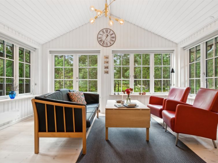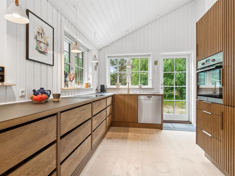 Enmannsbolig, bygget i 2022. 450 m fra sjøen. Privat: uberørt tomt 4'000 m2. Grill. I huset: vaskemaskin, tørketrommel. Parkering ved hbrukt. Daglivarehandel 4.5 km. Golfbane 4 km. Eieren godtar ikke noen ungdomsgrupper.