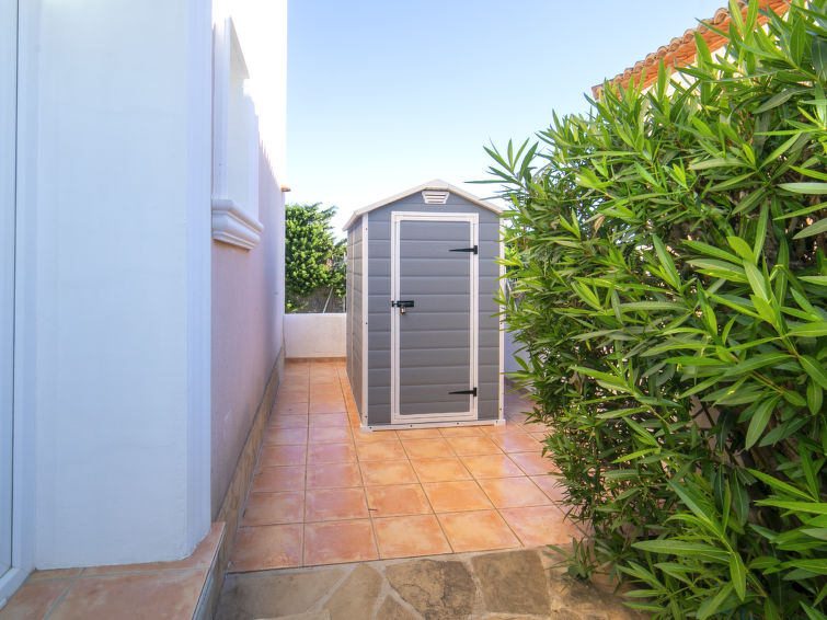 Meget fin bungalow med 2 etasjer, rekkehus. 15 hus i resorten. I området 2 km fra sentrum av Calpe, i distriktet Garduix, i en roligt, solrikt posisjon boligområde, område med lite trafikk, 2 km fra sjøen, 2 km fra stranden. Fellesbruk: tomt (inngjerdet) med plen og planter, plen med solningsområde, vakker hage for avslappning, 1 badebasseng (15 x 14 m, Sesongåpent: 01.Jan. - 31.Des.). Utendørs dusj. Privat: tomt (inngjerdet). Terrasse, grill. Supermarked 1.5 km, restaurant 1 km, café 1 km, sandstrand "Playa Arenal" 2 km. Sporthavn 3.8 km, marina 3.8 km, golfbane 12 km, surfeskole 3.8 km, seileskole 3.8 km, tennis 1.1 km. Attraksjoner i nærheten: Aqualandia, Mundomar, Terra Mítica, Terra Natura, Benidorm Palace (Benidorm), Les Fonts de l'Algar, Castillo de Guadalest. Bygning med elektriske portener.
