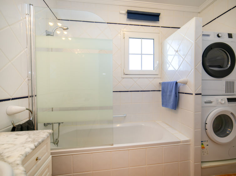 "Residencial Bel-Air", 3 rom bungalow 119 m2 på 2 etasjer. Romlig og lys, komfortabelt og vakkert møbler: stue/spisestue med, satelit-TV, air-conditioning, vifte og varmluft oppvarming. Utgang til hagen, til terrassen. Åpent kjøkken (stekeovn, oppvaskmaskin, 3 keramiske kokeplater, brødrister, vannkoker, mikrobølgeovn, elektrisk kaffemaskin). Sep. WC. øverste etasje: 1 rom med, 1 dobbeltseng (1 x 180 cm, lengde 200 cm), bad/dusj/bidèt/WC, air-conditioning, vifte og varmluft oppvarming. Utgang til terrassen. 1 rom med, 1 dobbeltseng (1 x 150 cm, lengde 200 cm), air-conditioning og varmluft oppvarming. Utgang til terrassen. Dusj/bidé/WC. Stor terrasse. Terrassemøbler, grill (flyttbar). Vakker god utsikt av området. Fasiliteter: vaskemaskin, strykejern, høy barnestol barneseng for barn opp til 2 år, hårføner. Internett (trådløs LAN [WLAN], gratis). Parkeringsplass (inngjerdet). Velegnet for familier. VT-499338-A