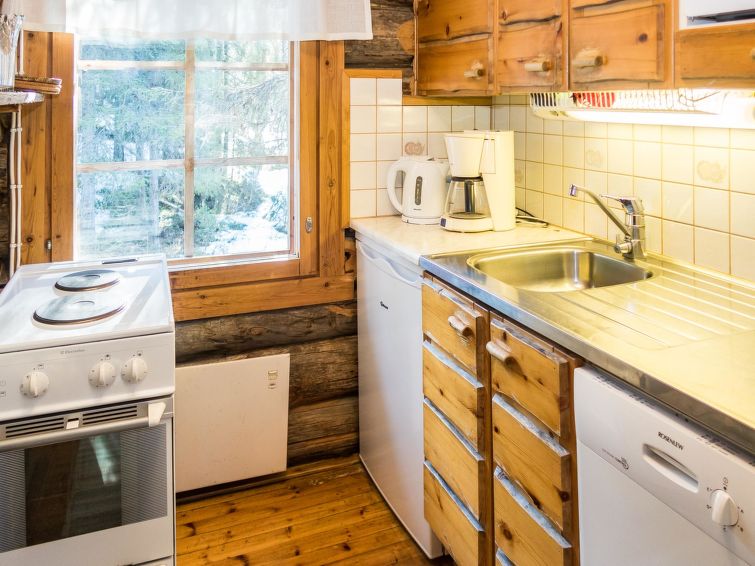 50km north of Kuusamo, Ruka 25km, Lake Juumajärvi 100m, sandy beach in public use. Log cottage, built in 1985, alcoves 1-2: double bed (width 130-140 cm), combined kitchen/living room, electric sauna.