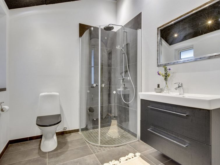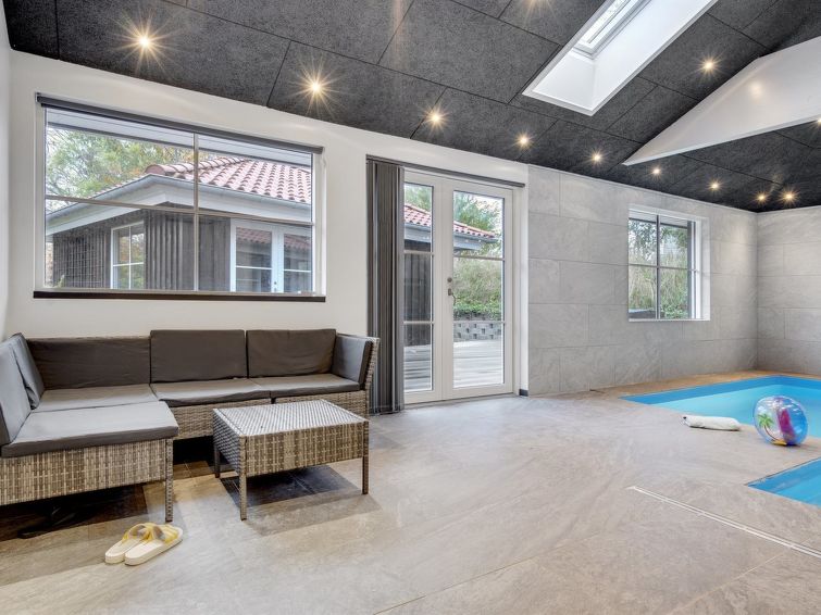 Enmannsbolig, bygget i 2021. 650 m fra sjøen. Privat: tomt 1'207 m2, velholdt hage, innendørs pool (5 x 6 m, 30 m2, dybde 150- 150 cm dyp). Terrasse (130 m2), grill. I huset: badstu, vaskemaskin, tørketrommel. Parkering ved hbrukt. Daglivarehandel 1.2 km. Golfbane 1 km. Eieren godtar ikke noen ungdomsgrupper.