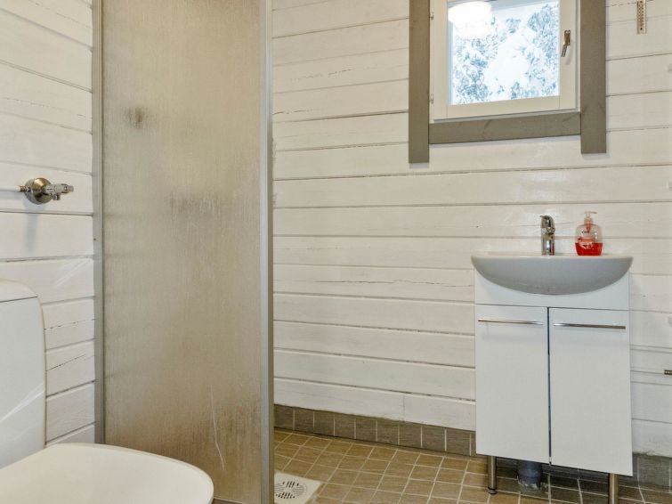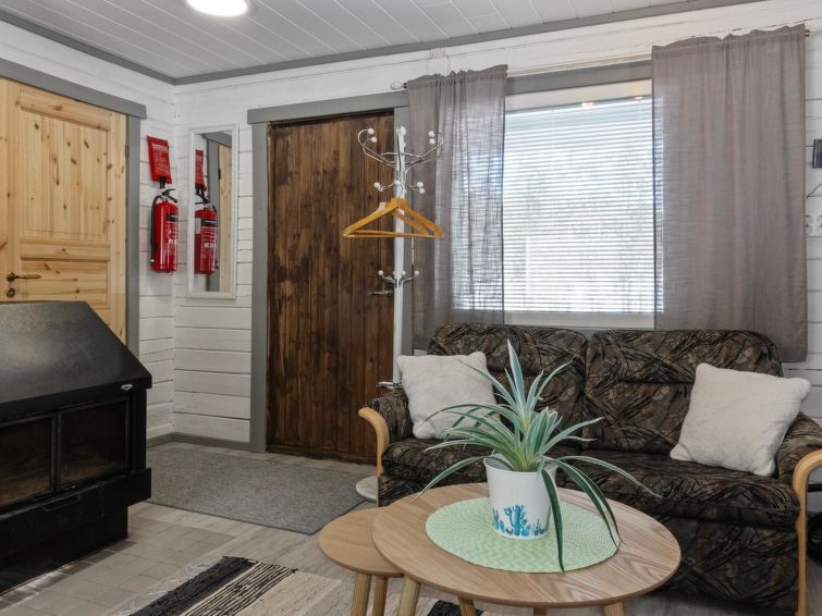 Log cabin, built in 2022. Sofa bed in the kitchen/living room, 2 beds in the alcove (no door, curtain, etc.), sauna, washroom/WC and small covered terrace.