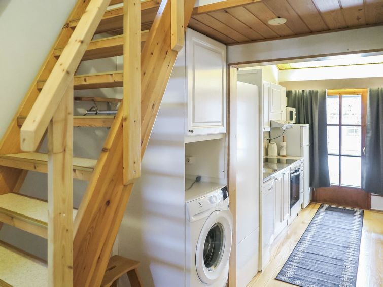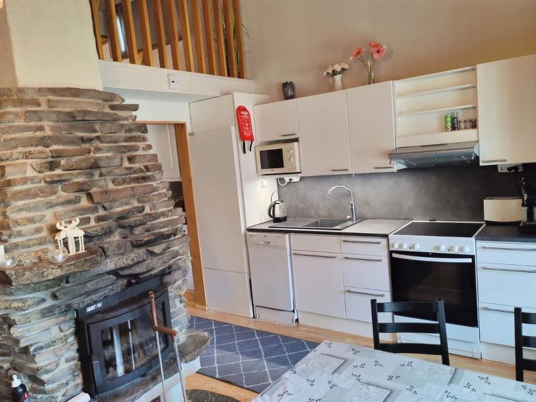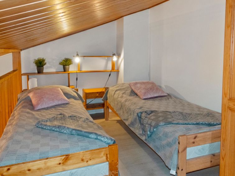 Apartment in wooden semi-detached house, built in 1983, afterwards renovated. Livingroom / kitchen with sofa bed, bedroom with 2 beds, loft with 2 beds, steep stairs to loft. Sauna, bathroom / toilet. Small covered terrace and storage. A warm ski maintenance room, in shared use of several apartments.