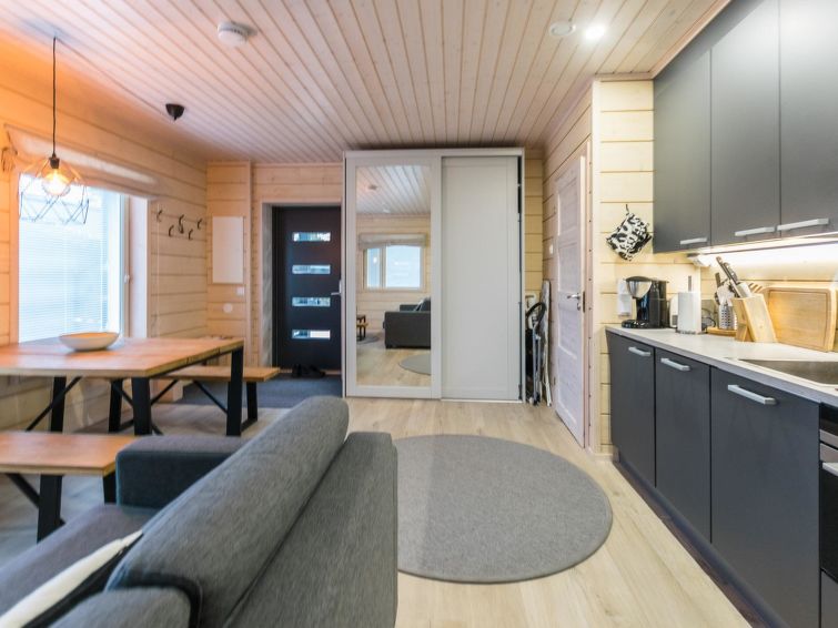 Cabin is located in Pyhä ski resort and only short walk away from ski slopes. Apartment is on the hill and there is a beautiful view to the Lapland forest landscape. The apartment is connected to a bigger cabin, but it is it's own separate apartment, located in the garage building. There is a large cabin in same yard, but it's not including in the booking.