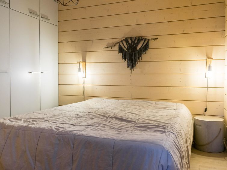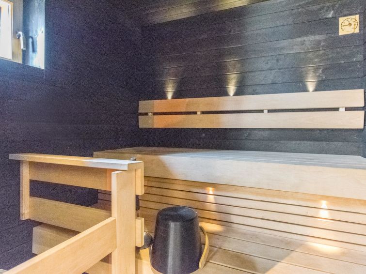 There is a kitchen, bedroom with a 160cm double bed, sofa-bed 140cm wide, toilet, shower and sauna. One garage parking space included.