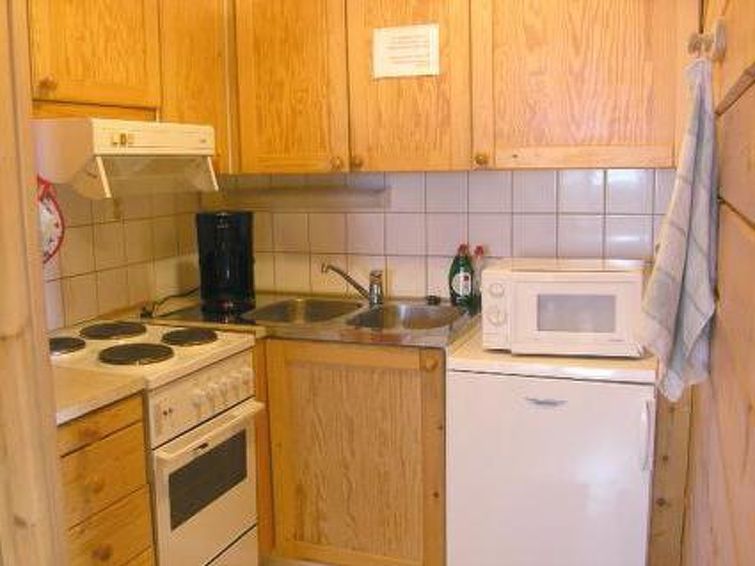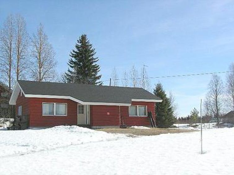 Wooden apartment in semi-detached house, built in 1990, living room with 2 beds, bedroom with 2 beds, mattresses on the loft (deep stairs to the loft, height of the loft is 1,45 at highest), kitchen corner, electric sauna, wash room/toilet, vestibule, storage. Apartment in semi-detached house in Holiday Village which is located in scenic and traditional Jokijärvi village. Hiking path. Campfire site by shore (in shared use). Also caravans in the area.