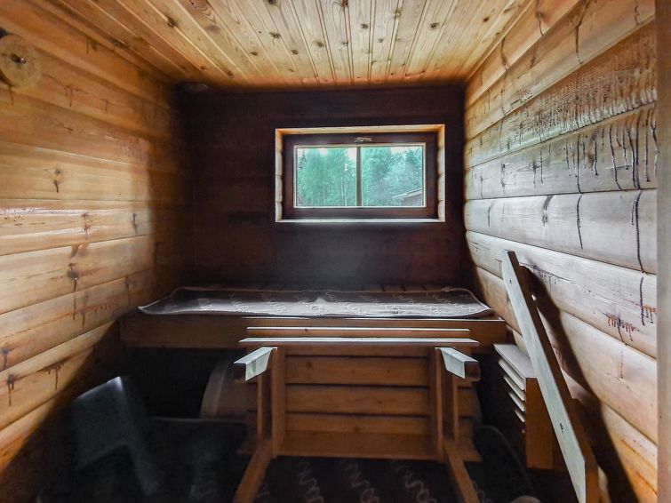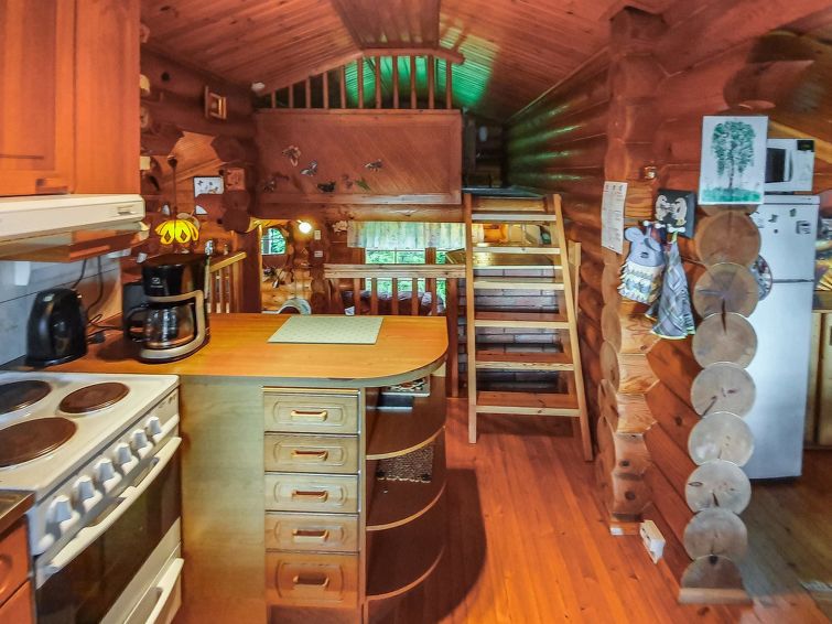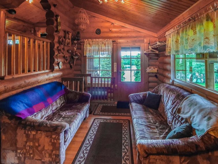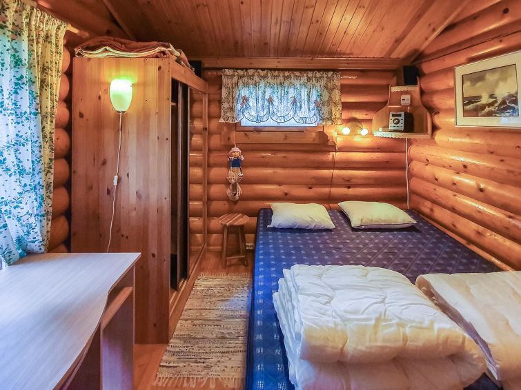 Log cottage 1992, kitchen 1 extra bed, living room, bedroom double bed, sleeping loft (sloping ceilings, height less than 160 cm , steep stairs !!) 2 mattresses, sauna (electric stove), washroom, dressing room, porch.