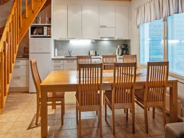 For a child: Travel bed and high chair, potty and safety gates on the down stairs. Kajaani 33 km, Sotkamo 7 km, Vuokatti ski slope 150 m, cross country track 300 m.