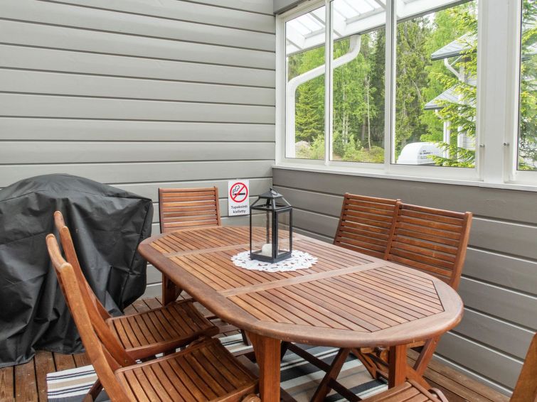 This wooden semidetached apartment was completed in 2003. It is located in Vuokatti ski centre.