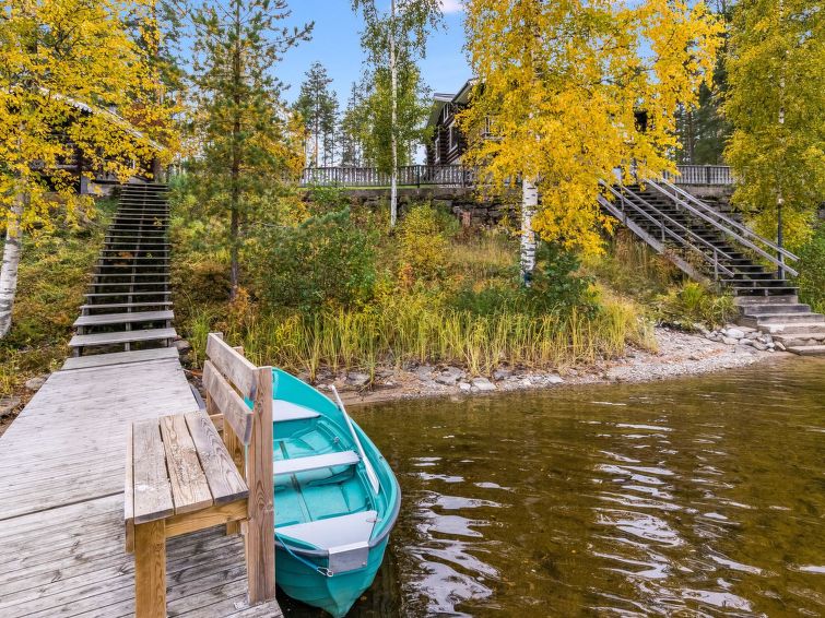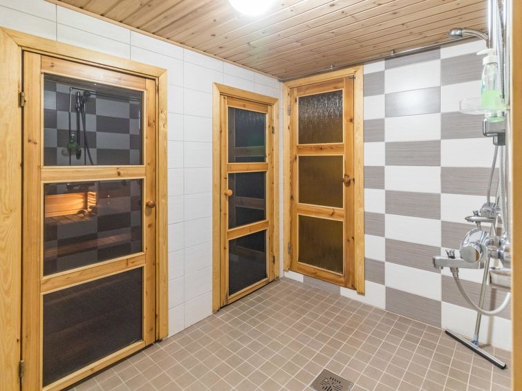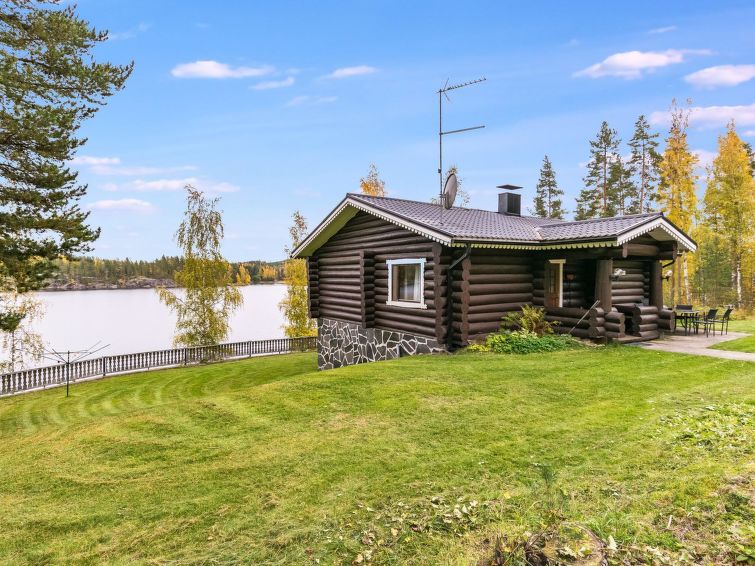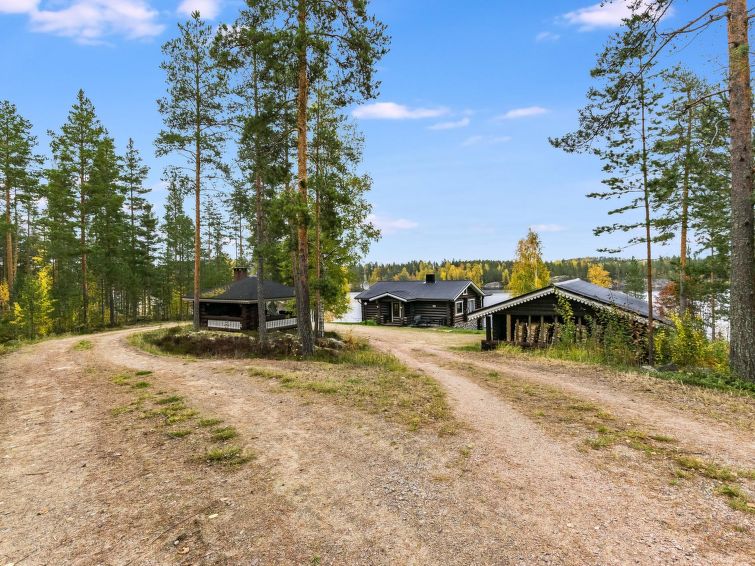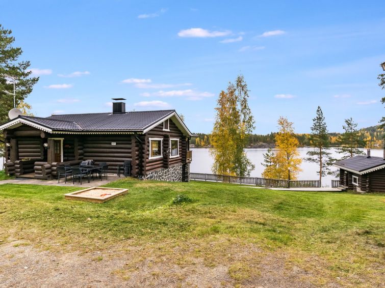 Lakeside sauna (wood-burning stove) with running cold water (not in winter!), shower in the main house, distance 10 meters. Lakeside sauna with running cold water (not in winter!), shower in the main house, distance 10 meters. Steep slope to shore from chalet, steps on the way. High standard chalet in splendid location, for year round use. Large bedrooms. Large roofed grill with summer kitchen. Sun shines on plot all day long.