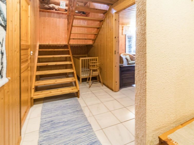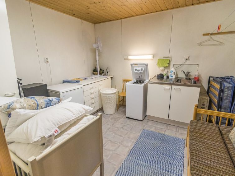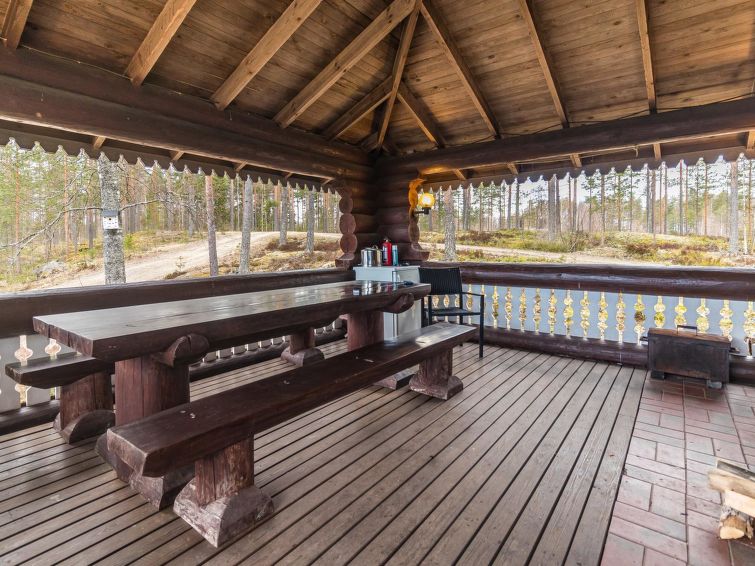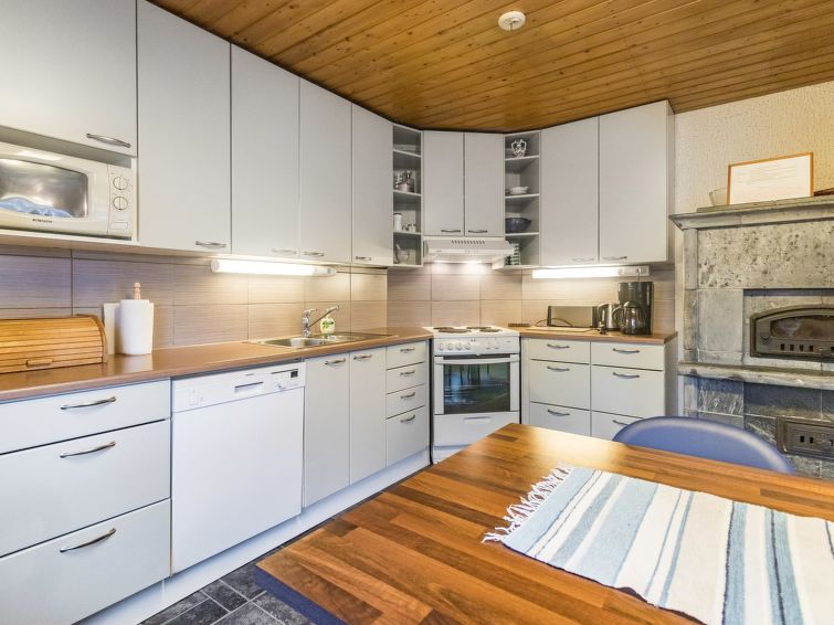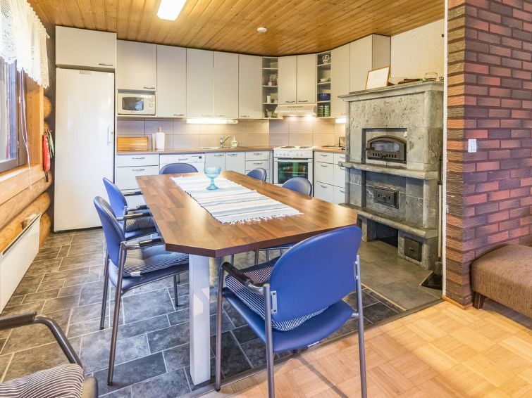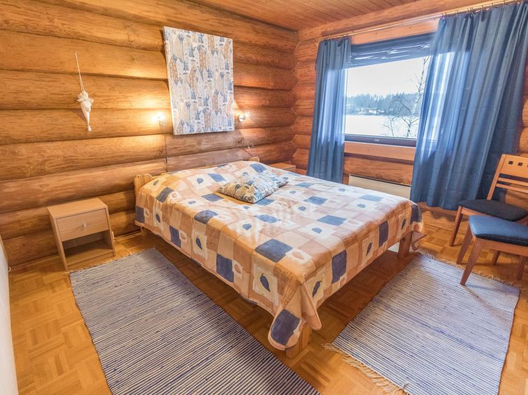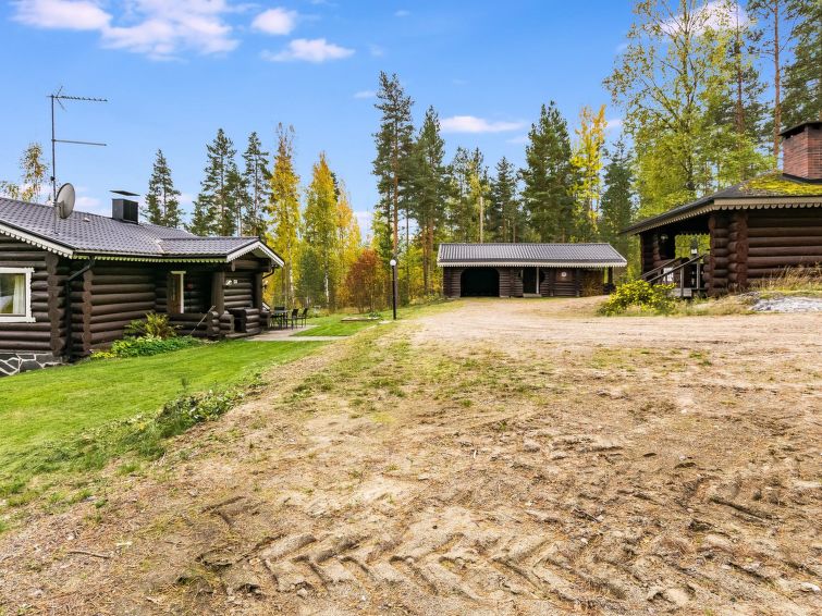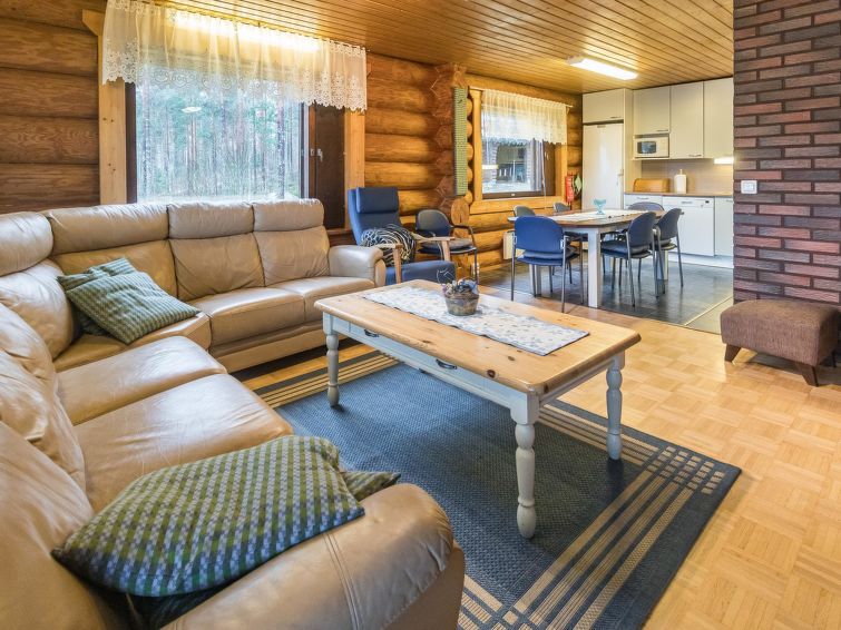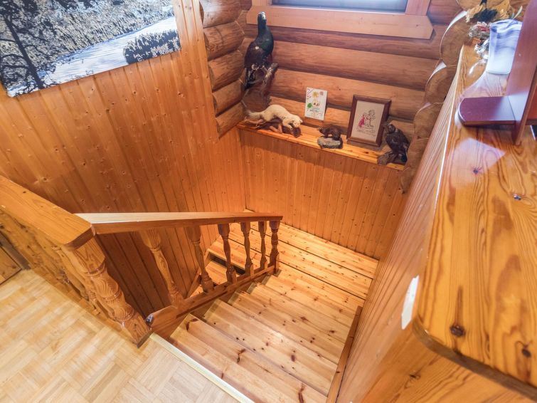 Log cottage 1992. Upstairs: living room/ kitchen, lounge, WC, 2 bedrooms 2 beds in each, balcony. Downstairs: 2 bedrooms, 2 beds in each, WC, utility room, dressing room, washroom, sauna (wood-burning stove), two showers, terrace yard. Roofed grill. C