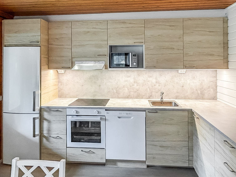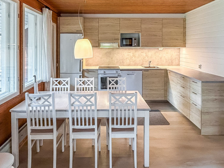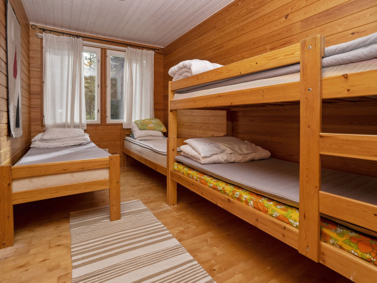 28km north of Kuusamo, Ruka 5,7 km. Apartment in plank-built semi-detached house, built in 1992, bedroom 1: 2 beds, bedroom 2: 2 beds and bunk bed, living room: convertible sofa for two, combined kitchen/living room, electric sauna. Semi-detached house situated near conifer forest.