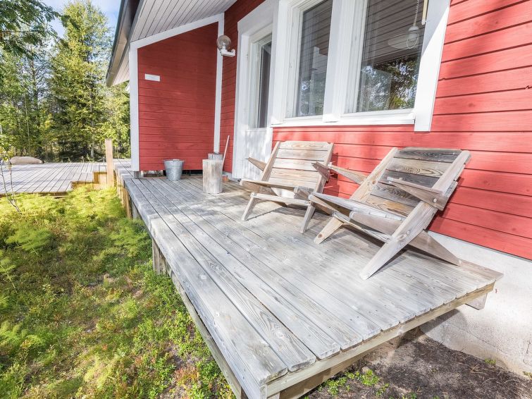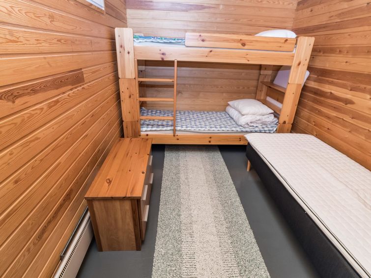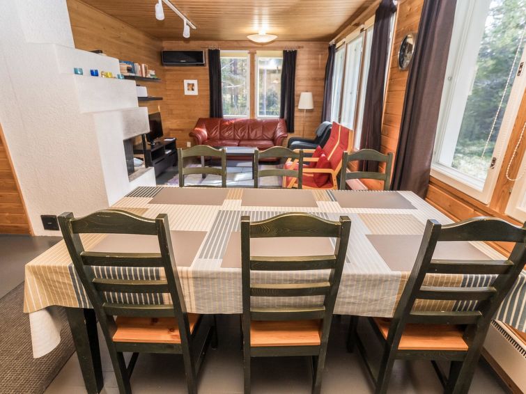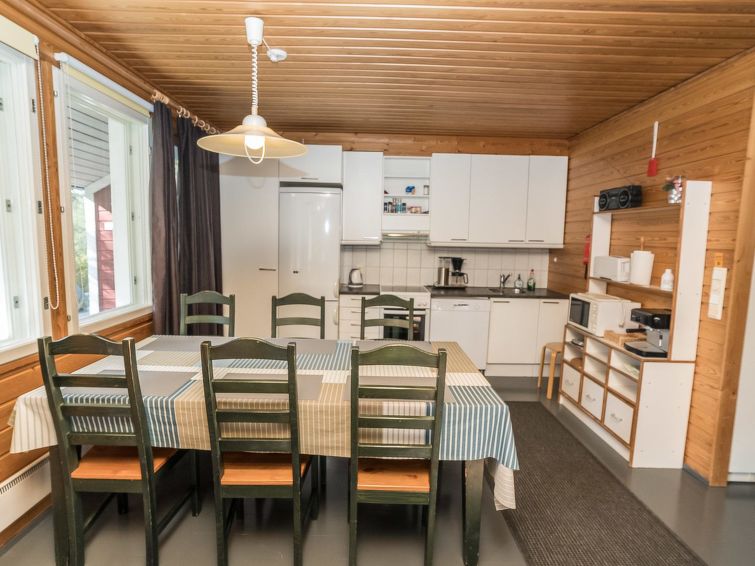 28km north of Kuusamo, Ruka 5,7 km. Apartment in plank-built semi-detached house, built in 1992, bedroom 1: 2 beds, bedroom 2: 2 bunk bed, combined kitchen/living room, electric sauna. Semi-detached house situated near conifer forest. Cross-country ski and snowmobile trails pass near to the cottage.
