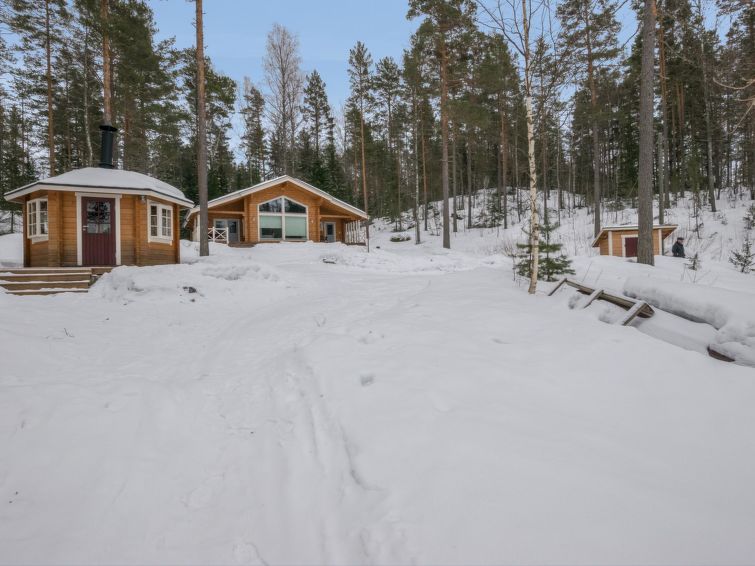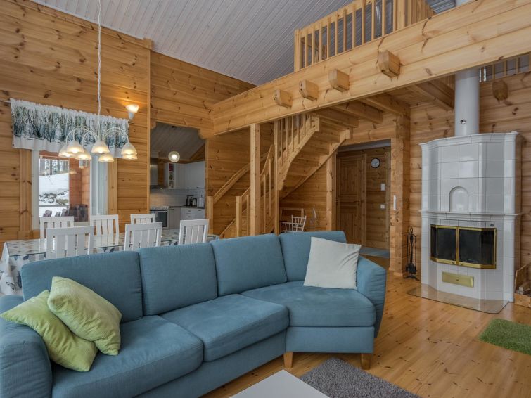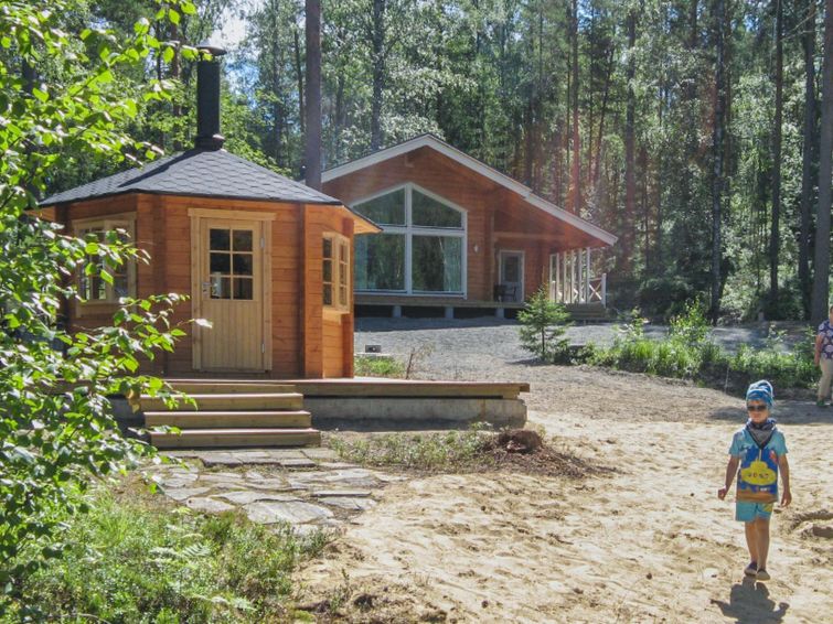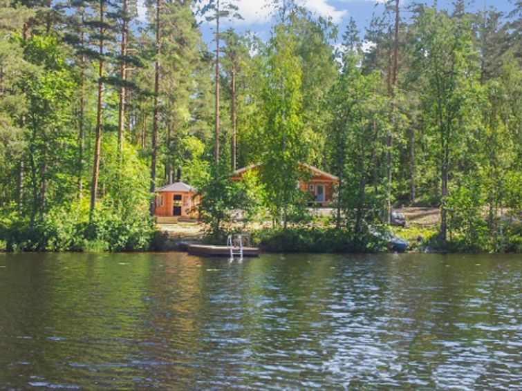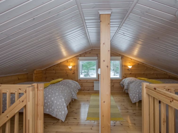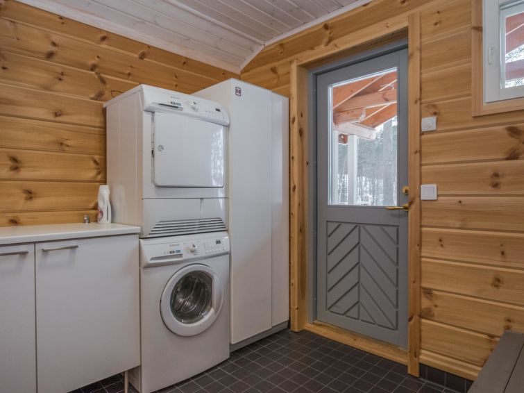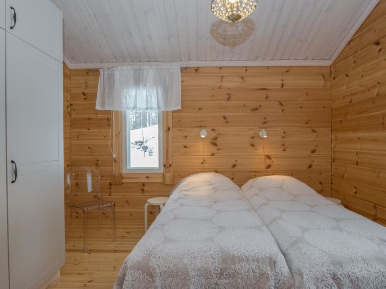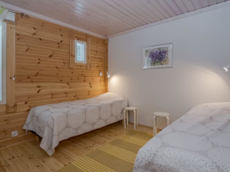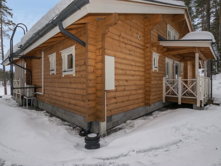 Log building 2014, kitchen, living room, two bedrooms (11 m²) two beds in both, WC, utility room, washroom (WC), sauna (electric sauna stove). Four beds in the loft. Air source heat pump, Wi-Fi.