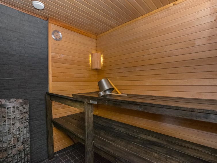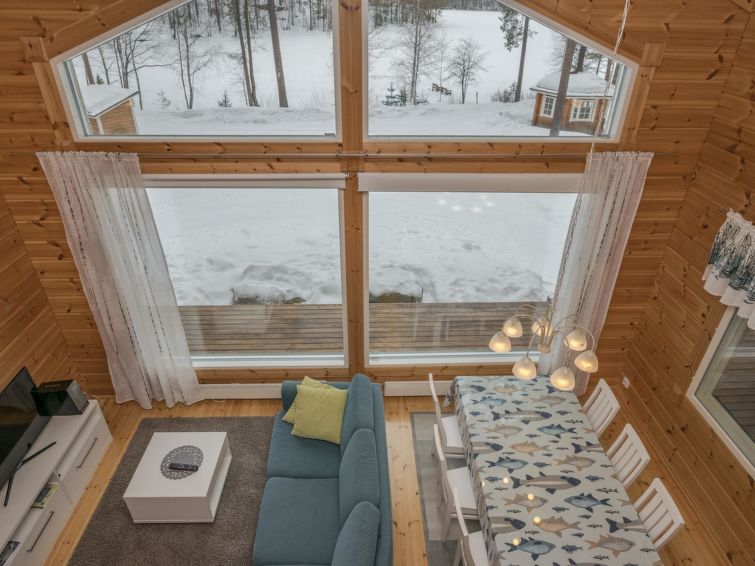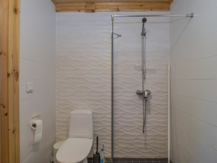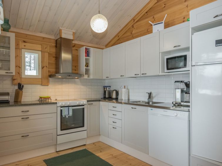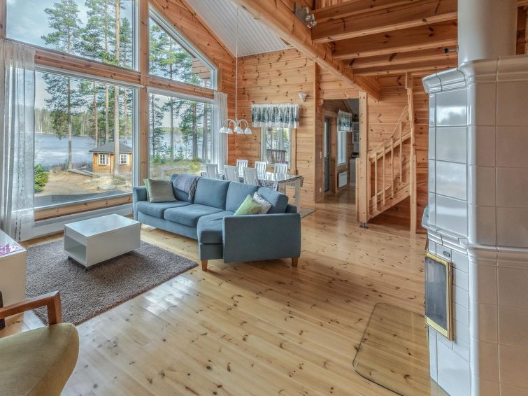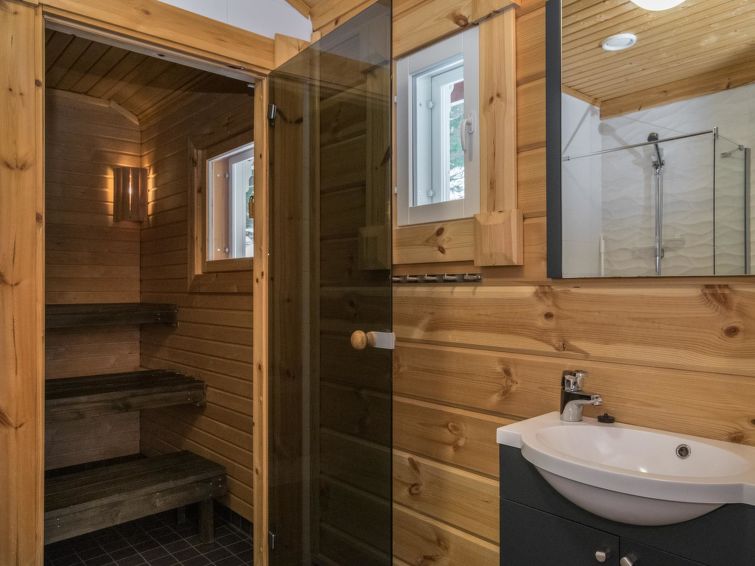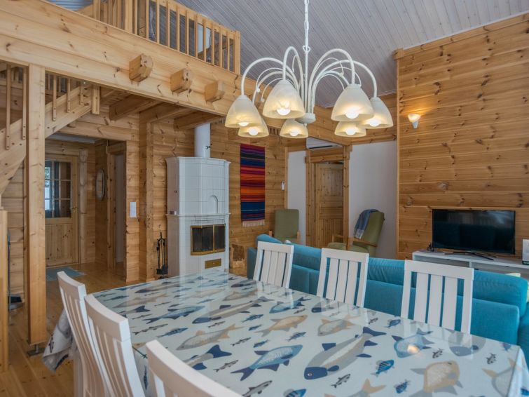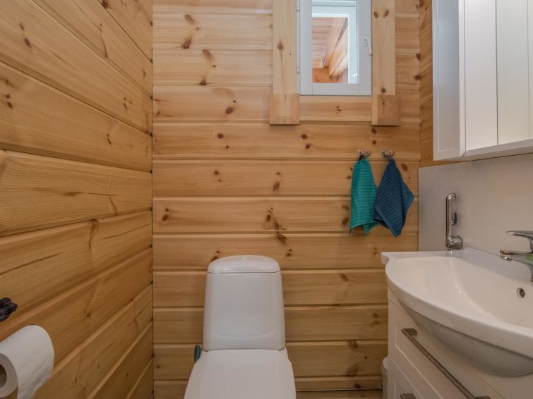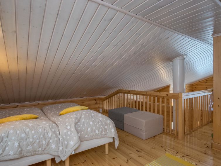 Log building 2014, kitchen, living room, two bedrooms (11 m²) two beds in both, WC, utility room, washroom (WC), sauna (electric sauna stove). Four beds in the loft. Air source heat pump, Wi-Fi.