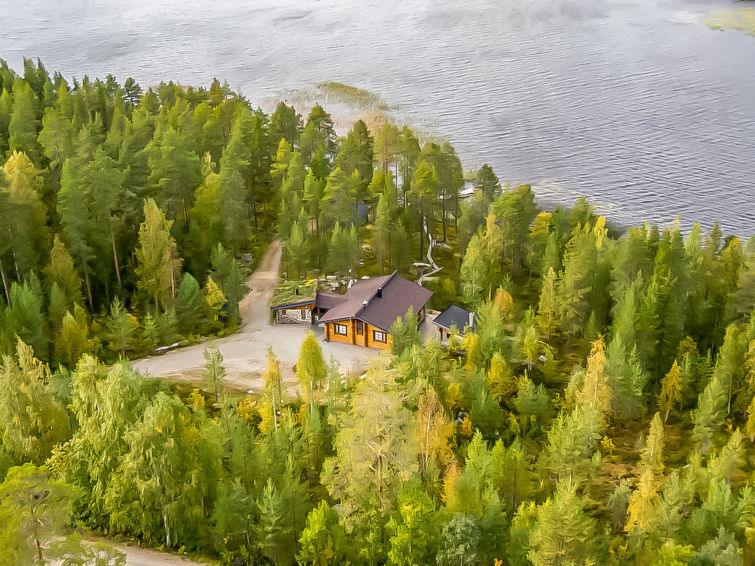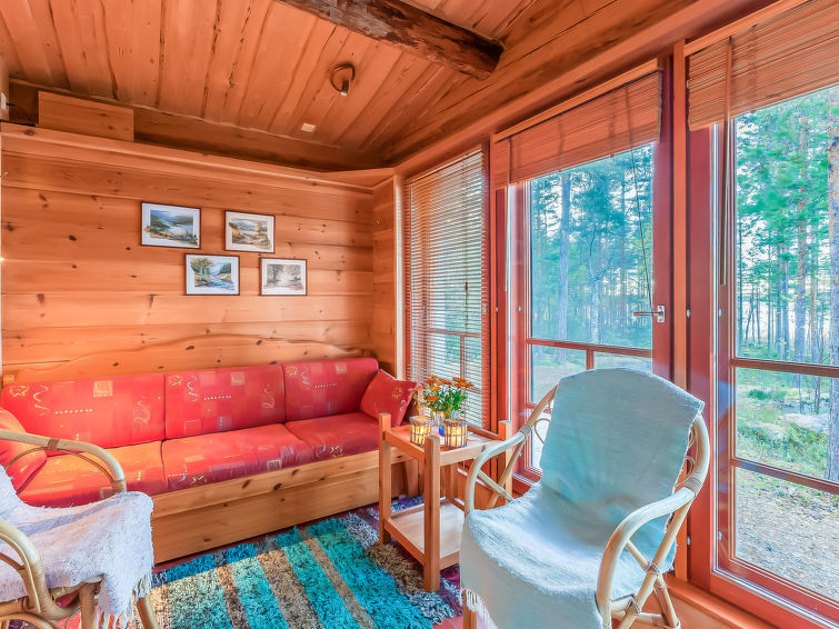 Log/ stone high standard chalet 2004, kitchen, living room convertible sofa/ bed for two, bedroom double bed, bedroom 2 beds, dressing room convertible sofa/ bed for two, washroom, sauna (elec. stove), hall and open porch. Access to sauna, washroom and dressing room through porch. Other toilet is in sauna building. Robust, high standard complexity with lovely view over Lake Pielinen. Chalet yard is level and sanded, duckboards have been laid from cottage to the shore. Plot is otherwise in natural state, partly rocky and stony. Good berry- and mushroom picking areas and fishing waters. Net license is included for the rent (no nets). Local Fishing licenses can be purchased from the owner of the cottage. Own boat and safe jackets. Owner rents out fishing equipment and outboard motor (3 hv).