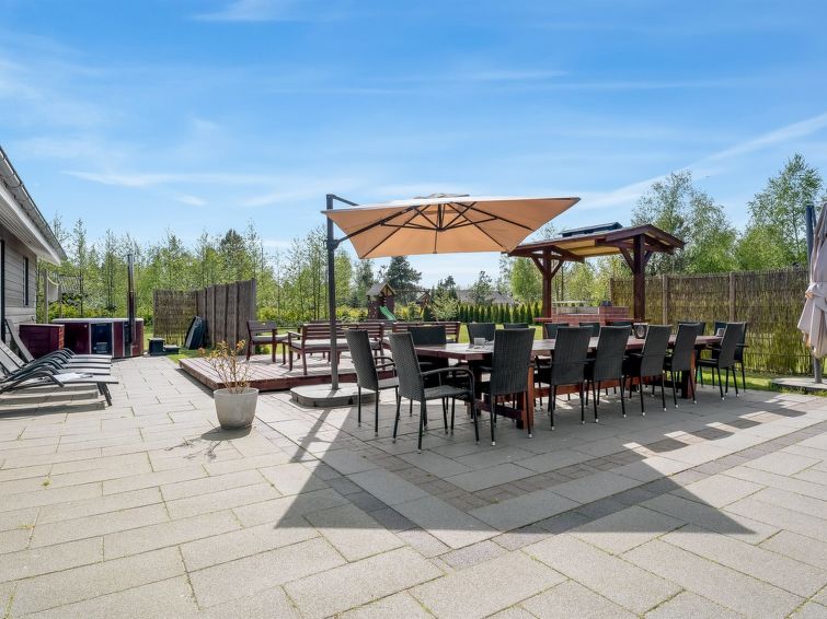 Enmannsbolig, bygget i 2019. 900 m fra sjøen. Privat: uberørt tomt 2'099 m2, innendørs pool (3 x 8 m, 2'9.8 m2, dybde 145- 145 cm dyp). Grill, lekeplass (huske). I huset: badstu, fotballsbord, vaskemaskin, tørketrommel. Parkering ved hbrukt. Daglivarehandel 2 km. Eieren godtar ikke noen ungdomsgrupper.
