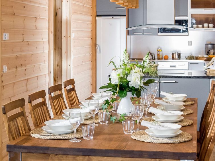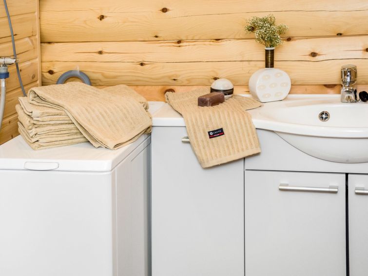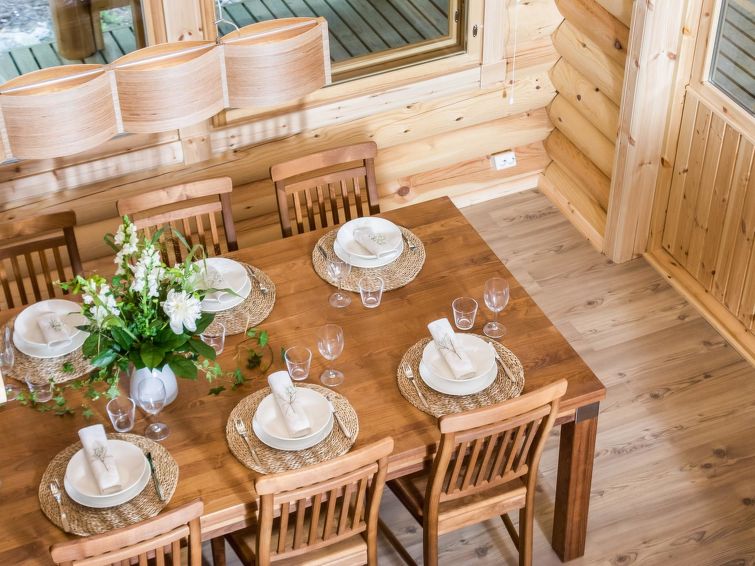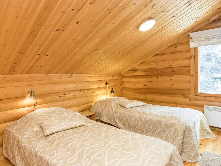 Log cottage 2006, kitchen, living room, two bedrooms (10 m²) each with two beds, dressing room, washroom, sauna (electric stove), large covered terrace. Upstairs, two bedrooms (7 m²) each with two beds, loft with a sofa bed for 1 person. Wi-Fi access.