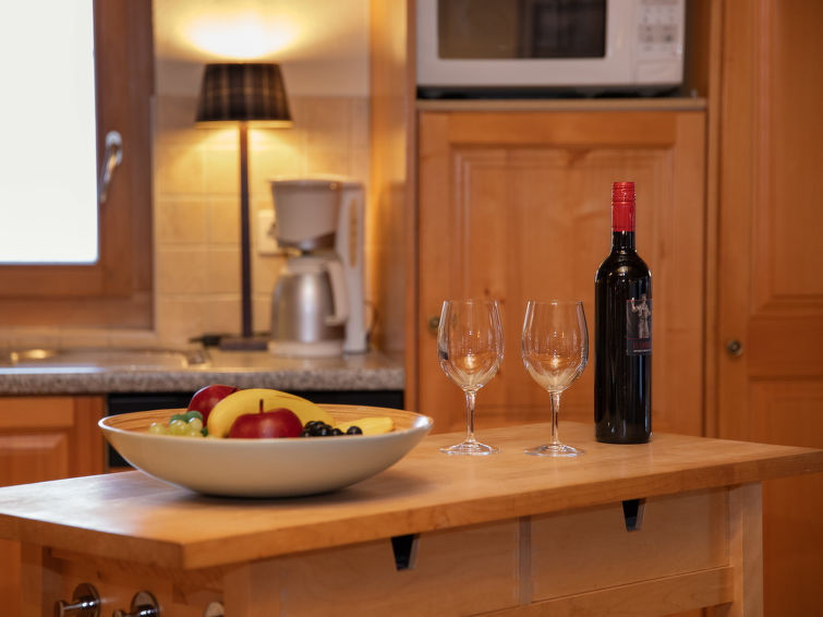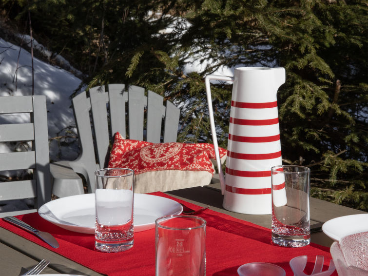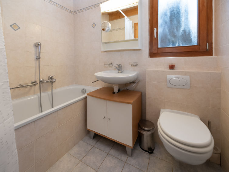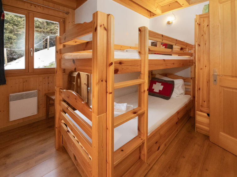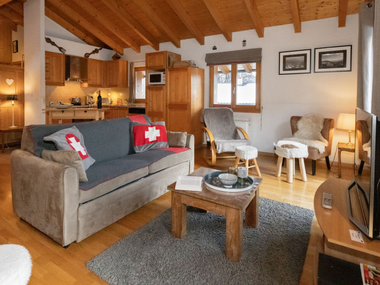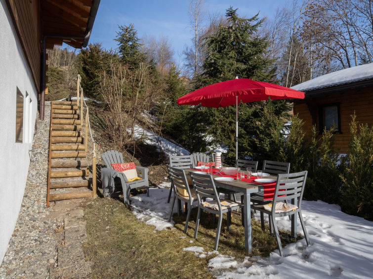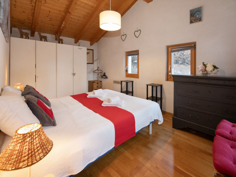 "Ropiar", 5 rom hytte 150 m2 på 2 etasjer, beliggenhet mot sør-vest. Komfortabelt og vakkert møbler: stor stue/spisestue med, spisebord, kabel-TV og flatskjerms TV. Utgang til balkongen. 1 rom med 2 senger (90 cm lengde 190 cm). Utgang til terrassen. Stort, åpent kjøkken (stekeovn, oppvaskmaskin, 4 keramiske kokeplater, mikrobølgeovn, elektrisk kaffemaskin, raclettegrill (ost)). Dusj/WC. I underetasje: 1 rom med, 1 x 2 køysenger (90 cm, lengde 190 cm). 1 rom med, 1 dobbeltseng (2 x 90 cm). Utgang til terrassen. 1 rom med, 1 dobbeltseng (2 x 90 cm). Bad/WC. El-oppvarming. Terrassemøbler, grill. Hærlig utsikt av fjellene. Fasiliteter: vaskemaskin. Internett (trådløs LAN [WLAN]). Parkeringsplass (4 Biler) ved hbrukt.