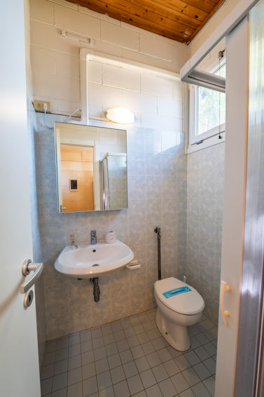 1 rom bungalow 20 m2. Praktiskt møbler: stue/soverom med 2 senger, spisebord, kjøkkenhjørne og satelit-TV. Utgang til terrassen. Kjøkkenkrok (4 gassbrennere, mikrobølgeovn, frys). Dusj/WC. Airconditioning, varmluftsoppvarming. Terrasse 12 m2, dekt. Terrassemøbler, liggestoler (1). Fasiliteter: barneseng. Internett (trådløs LAN [WLAN], gratis). Parkeringsplass (1 Bil) ved hbrukt.