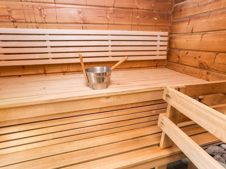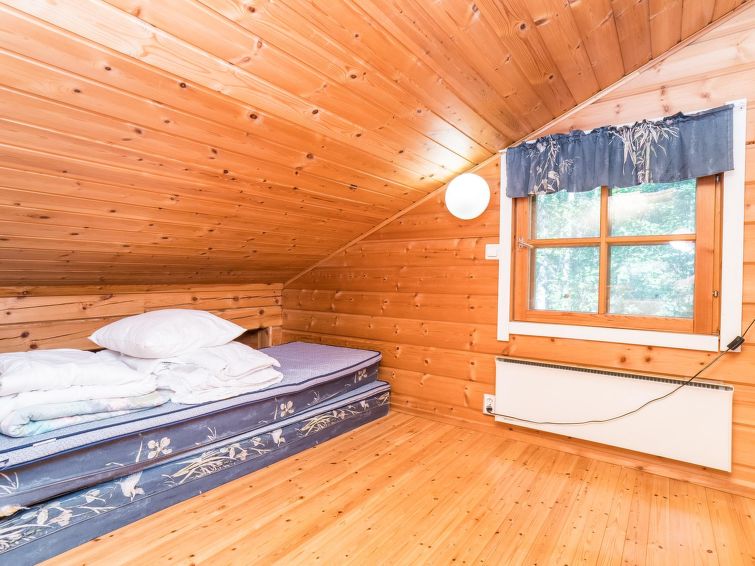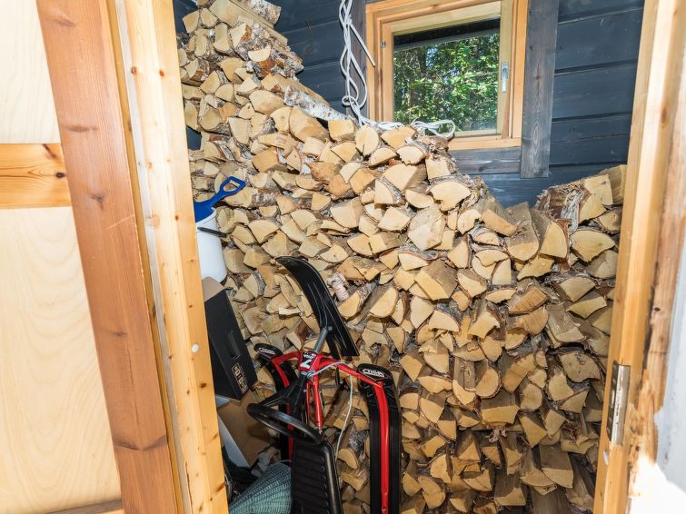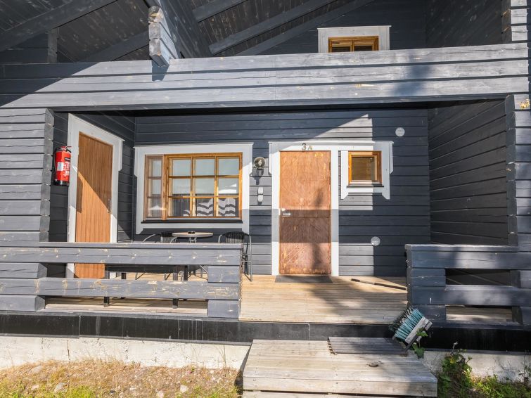 30km north of Kuusamo, Ruka village (Western Ruka) 7.5km, Vuosseli (Eastern Ruka) 3km, Lake Vuosselijärvi 200m. Log-built semi-attached house, built in 1989, bedroom: double bed, loft (8 m², steep stairs): 2-4 mattresses, living room: convertible sofa, combined kitchen/living room, electric sauna. Entrance to building on south.