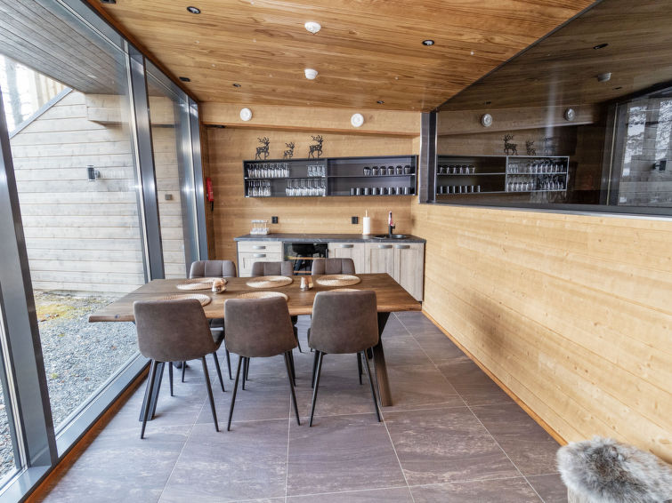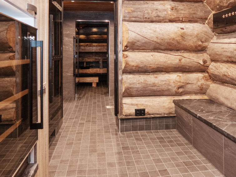 Ruka Panorama is the perfect destination for a quality vacation. Outdoor trails, ski slopes and services are nearby. The property's 2 saunas are included in the price and provide tasty baths to its visitors. Customers can also rent a unique lakeside sauna for an additional price, from the benches of which you can directly admire Ruka's magnificent scenery over lake Kesäjärvi.