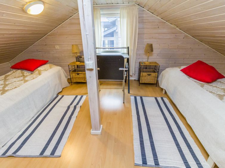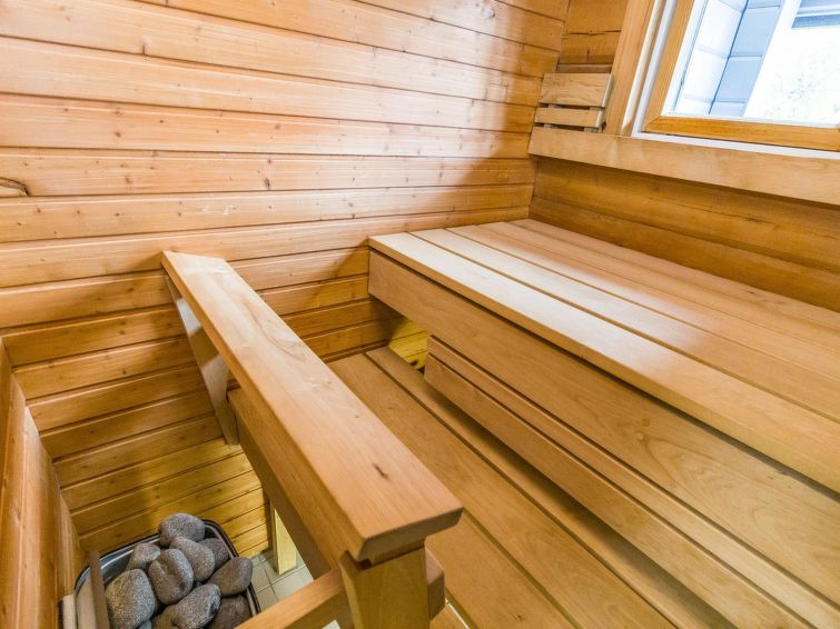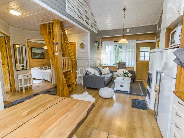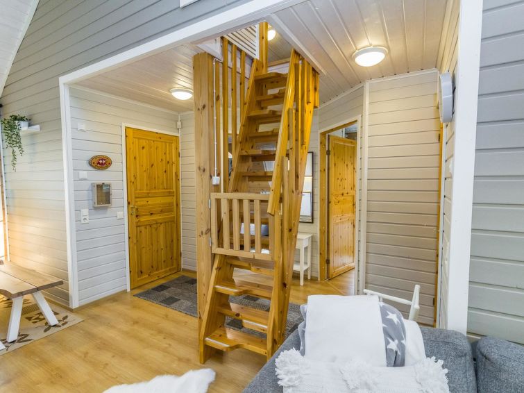 The other half of the charming semi-detached house built in 2006 on Ruka's Petäjäkuja offers cozy cabin accommodation. This destination has two bedrooms, each with two beds. In addition, there are two additional beds in the open loft. The location is particularly favorable for active people, as the routes are easily accessible, and the Ski Bus runs only 200 meters away, offering easy access to the core area of Ruka. A stylish kitchen and a comfortable electric sauna complete the package. Additional information: The nearest restaurant is Royal Ruka. The nearest ski lift is in Kelorinne.