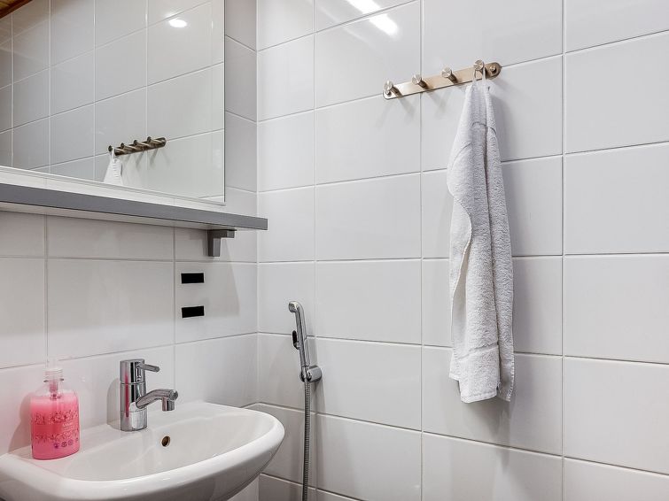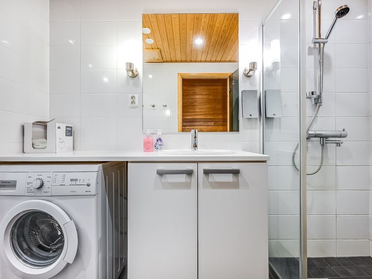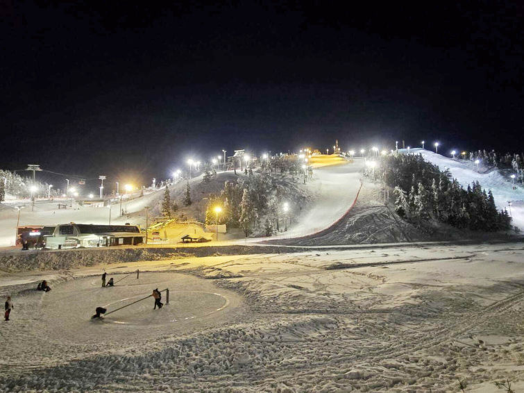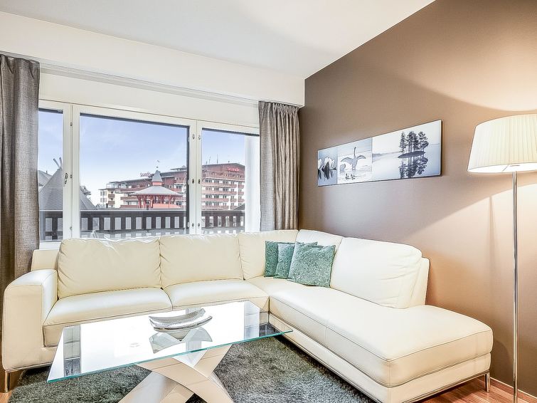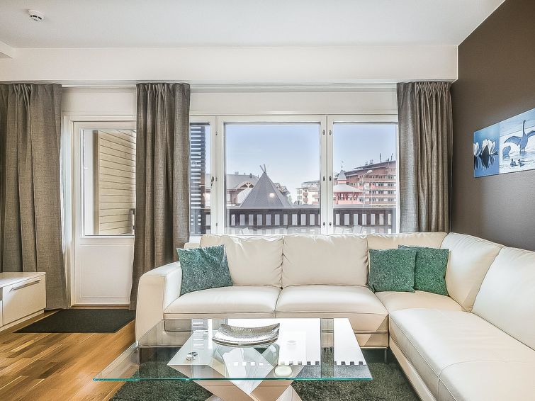 28 km north of Kuusamo, Ruka village (Western Ruka). Holiday apartment, built in 2014, bedroom 1-2: 2 beds/bedroom, living room: convertible sofa for two, combined kitchen/living room, electric sauna, balcony. Apartment situated in Ruka Village (Western Ruka), Ruka Ski Chalets building, second floor. Elevator. Lockable storage cabinet/apartment in ground-floor. Ski maintenance room (in common use). Parking area in the backyard, limited amount of parking places available (can not be booked in advance). In case it's full, there is a payable parking hall near by the building.