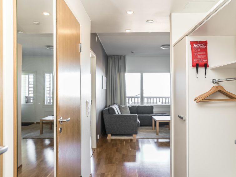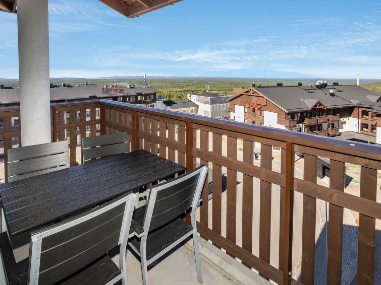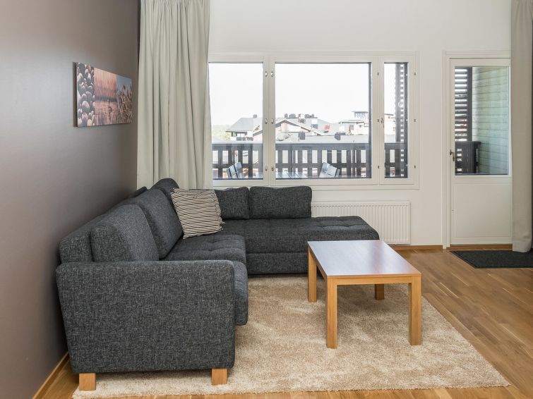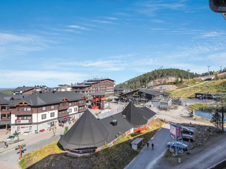 28 km north of Kuusamo, Ruka village (Western Ruka). Holiday apartment, built in 2014, bedroom 1-2: 2 beds/bedroom, living room: convertible sofa for two, combined kitchen/living room, electric sauna, balcony. Apartment situated in Ruka Village (Western Ruka), Ruka Ski Chalets building, fifth floor (top floor). Elevator. Lockable storage cabinet/ aparment in ground-floor. Ski maintenance room (in common use). Parking area in the back yard, 1 parking place/apartment.