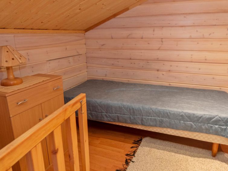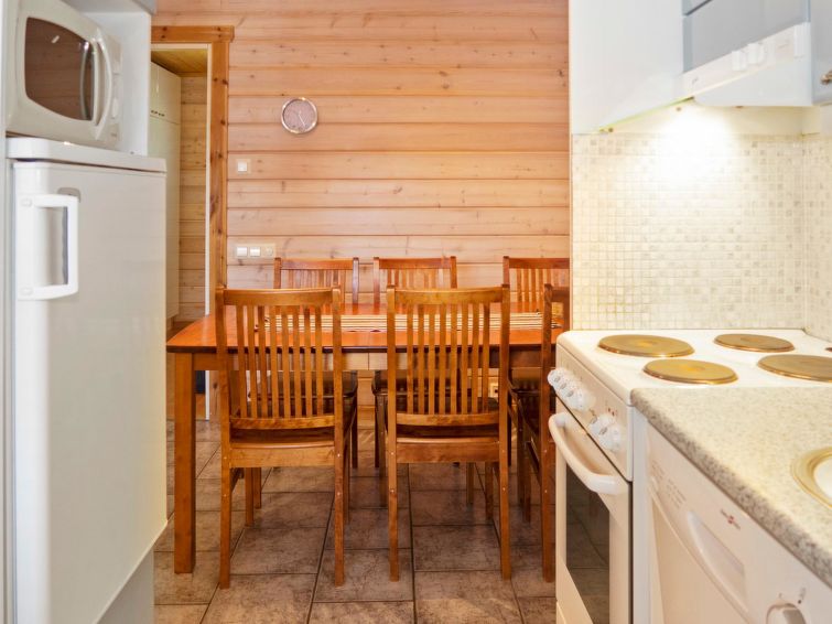 25 km north of Kuusamo, Vuosseli (Eastern Ruka) 1.3 km, Ruka village (Western Ruka) 4 km. Log-panelled apartment in row house, built in 2006, bedroom: 2 beds (possible to make a double bed), loft: 3 beds, living room: convertible sofa for two, combined kitchen/living room, electric sauna. Apartment situated near Mastonrinne slopes.