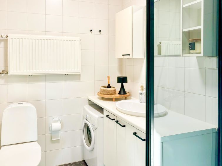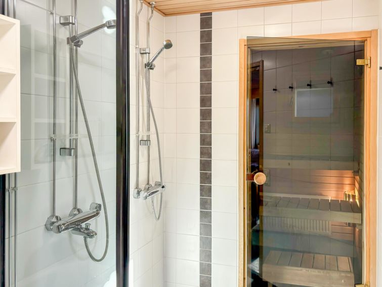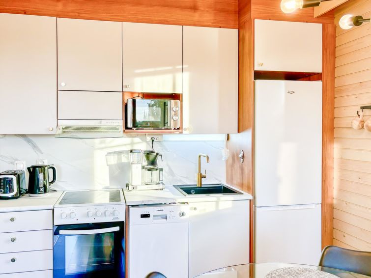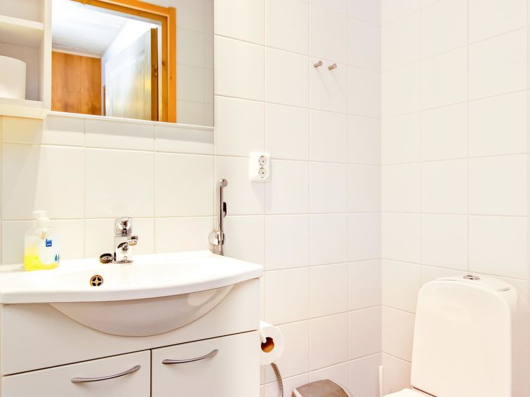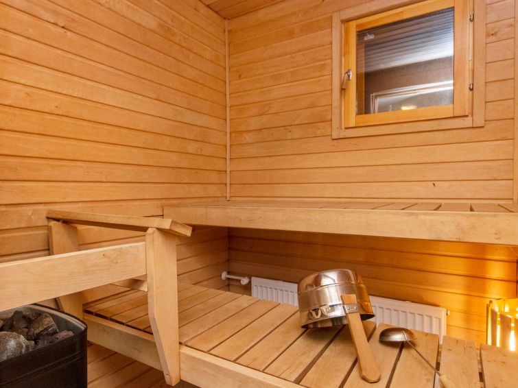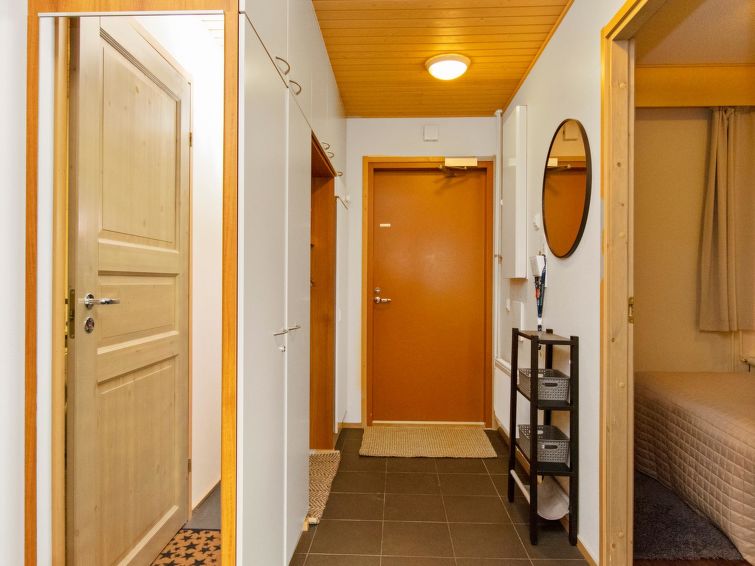 29km north of Kuusamo, Ruka village (Western Ruka) 400m. Apartment (built of wood/stone), built in 2009, bedroom1: 2 beds, bedroom2: 2 beds, living room: sofabed for 2, combined kitchen/living room, electric sauna, 2 showers. Apartment is located downstairs. Other apartments in the area. Near by the Aurinkorinne apartments.