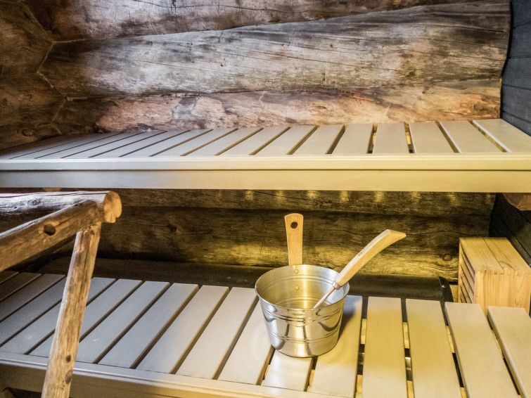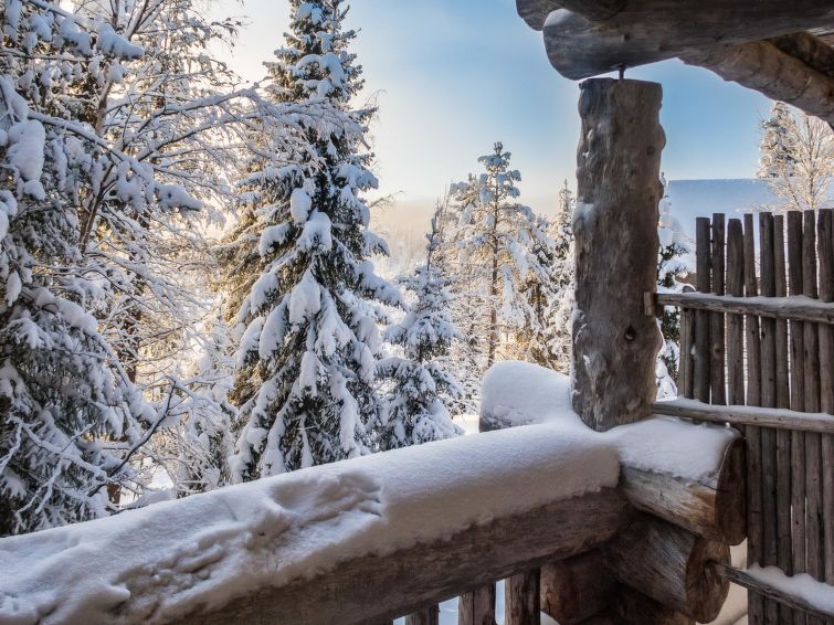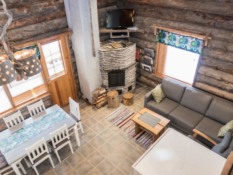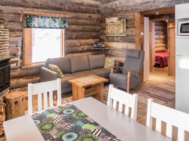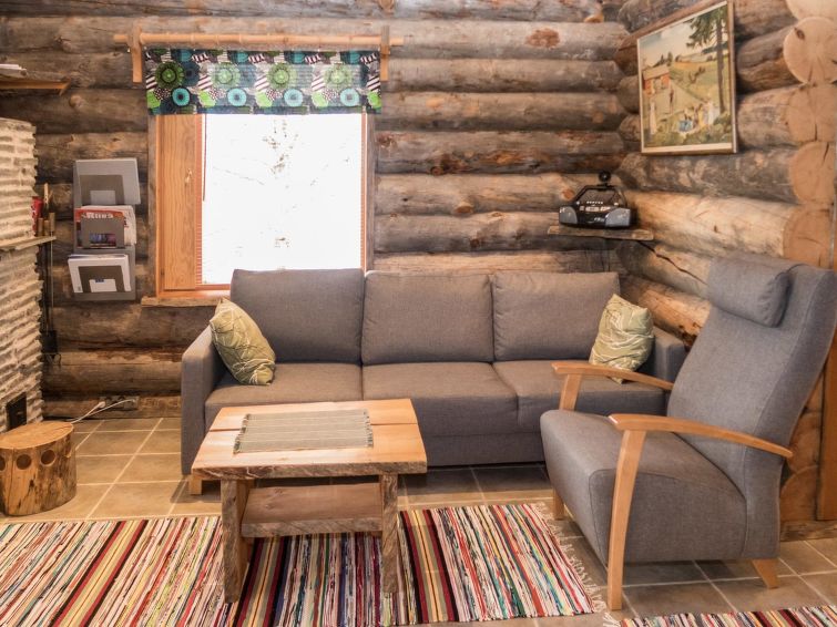 25 km north of Kuusamo, Vuosseli (Eastern Ruka) 800m. Apartment in log-built semi-detached house, built in 2004, bedroom: 2 beds, bedroom in loft: 2 beds, living room: convertible sofa for two, combined kitchen/living room, electric sauna. Area 60,5 m² + loft 12 m².