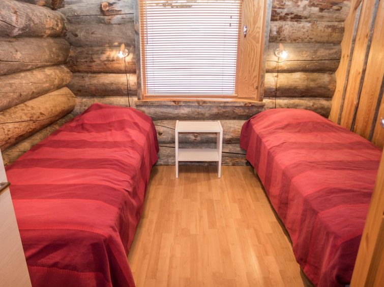 25km north of Kuusamo, Vuosseli (Eastern Ruka) 800m. Apartment in log-built semi-detached house, built in 2004, bedroom: 2 beds, bedroom in loft: 2 beds, living room: convertible sofa for two, combined kitchen/living room, electric sauna. Area 60,5 m² + loft 12 m². One Ruka ski pass incl. to the price during the ski season 2023-24!