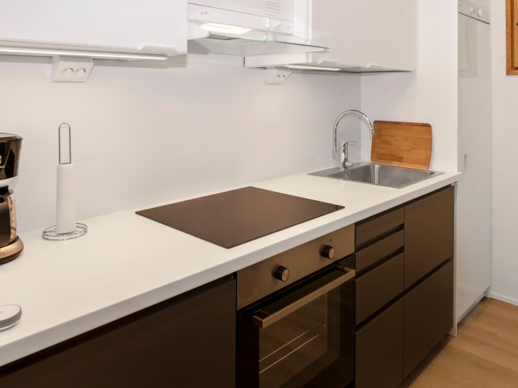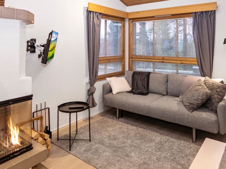 Apartment in a row house area, on a hillside location. Good connections to the Ruka central square e.g. by foot or SkiBus (distance to the bus stop is about 350 m). The nearest ski lift is Kelo E, the distance is about 1,5 km. Ski trail 300 m. The nearest restaurant is Royal Ruka.