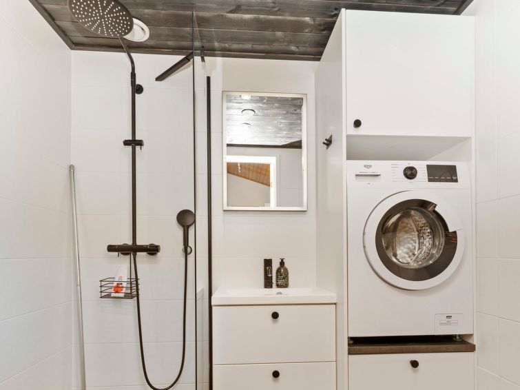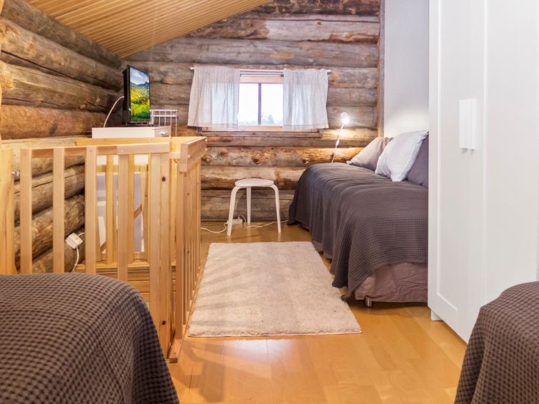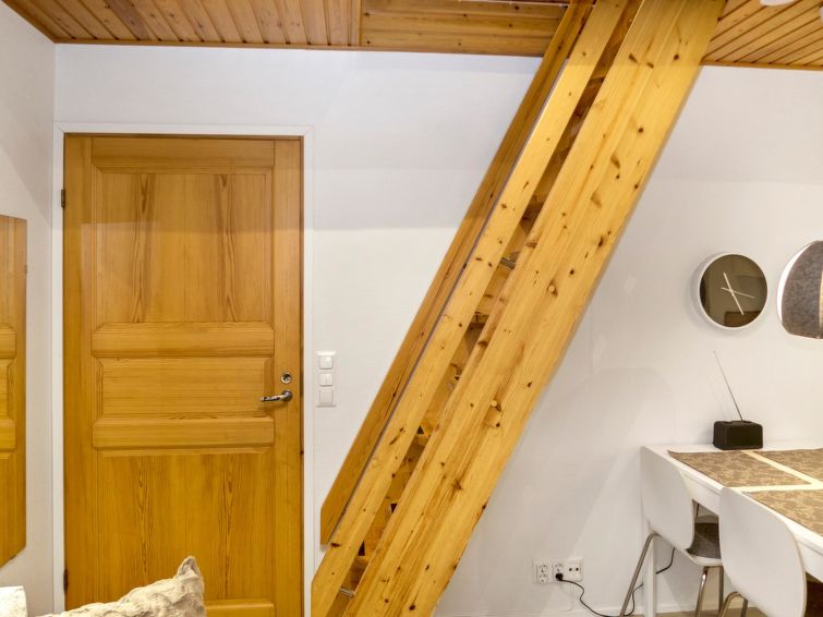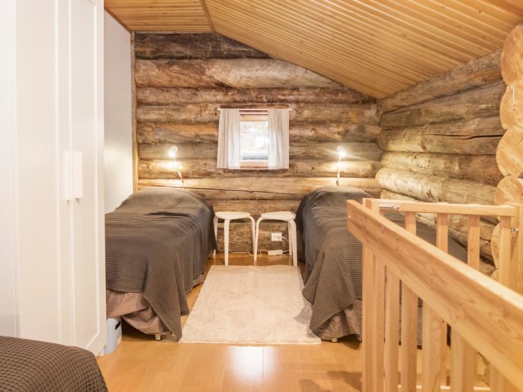 27 km to the north from Kuusamo, Ruka village (West-Ruka) 1,5 km. Apartment with loft in the row house. On the ground floor, WC, washroom, electric sauna and living room/kitchen (spreadable sofa bed for two). Loft: 3 beds.