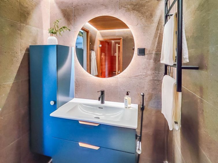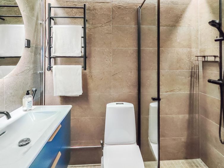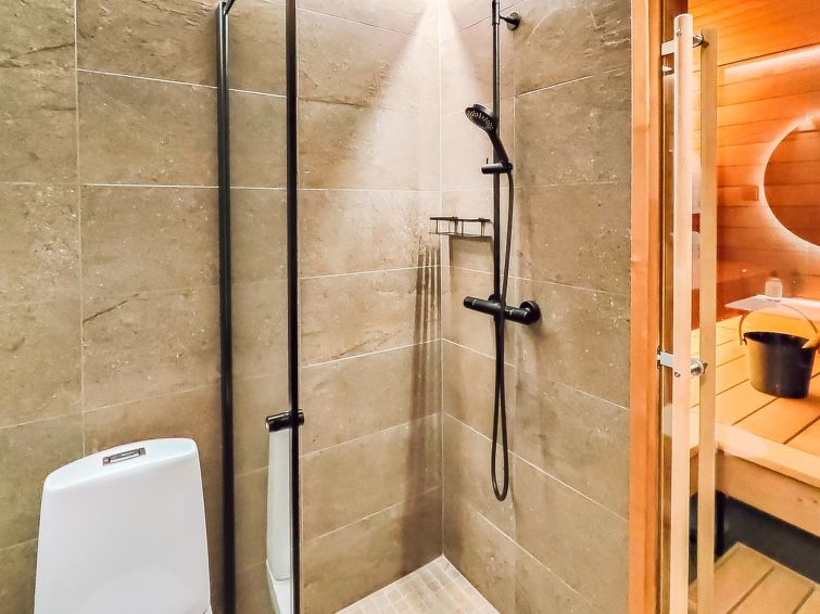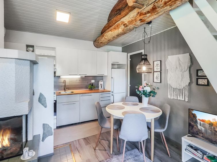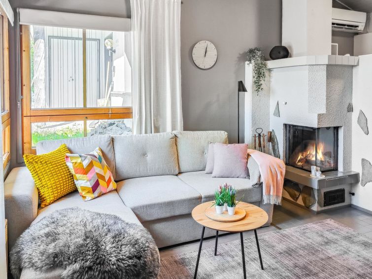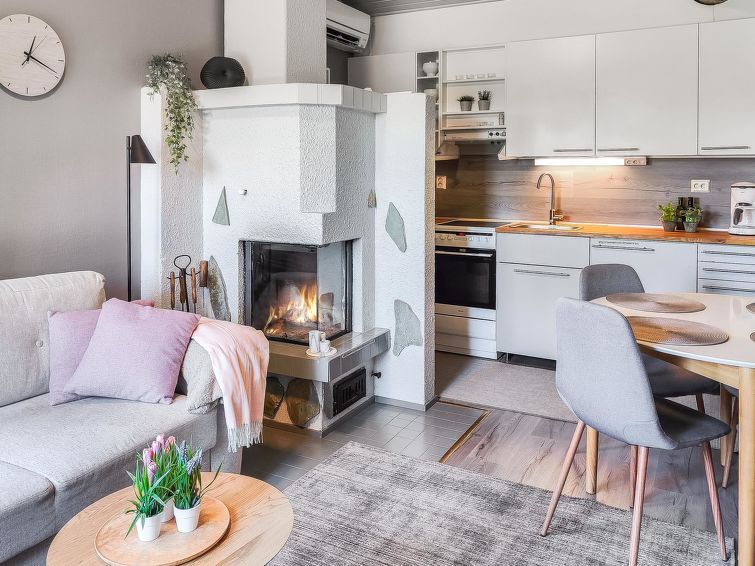 Apartment in a row house area on a hillside location. Good connections to the Ruka central square, e.g. by foot or SkiBus (distance to the bus stop is about 350 m). The nearest ski lift is Kelo E, distance is about 1,5 km. Ski trail 300 m. The nearest restaurant is Royal Ruka.