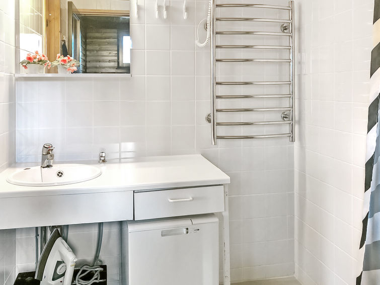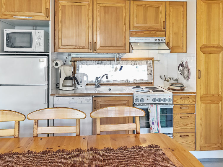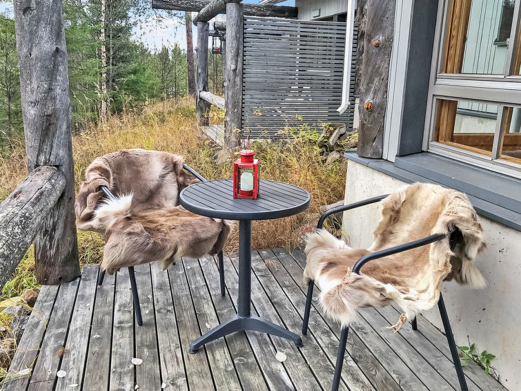 Apartment in a row house area, on a hillside location. Good connections to yhe Ruka central square e.g. by foot or SkiBus (distance to the bus stop is about 500 m). The nearest ski lift is Kelo E, distance is about 1.5 km. Connecting route to the official snowmobile route less than 100 m away. Ski trail 100 m. The nearest restaurant is Royal Ruka.