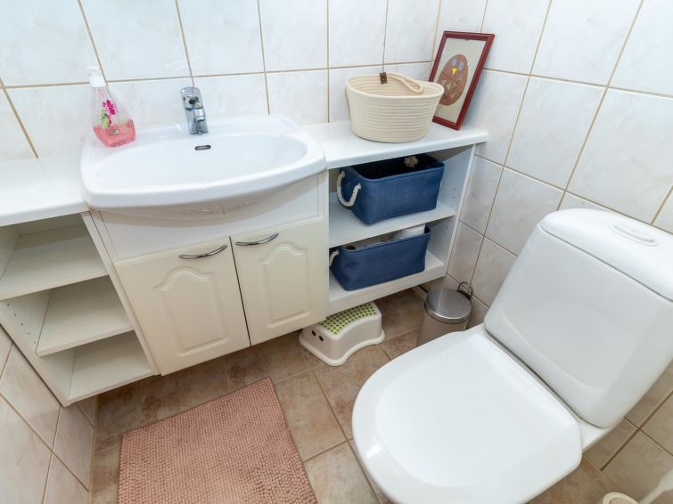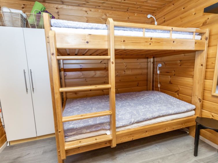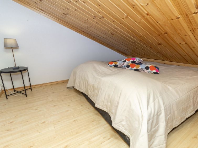 In this bright row apartment built in 1999 in Vuosseli, Ankkurikuja, you have everything you need for a relaxing vacation. The apartment comprises three bedrooms in total: two on the ground floor and one in the loft. One of the ground floor bedrooms features a spacious double bed, while the other has a 120 cm wide bunk bed. The loft bedroom also includes a double bed, and an open loft area has two additional beds. The apartment accommodates a maximum of six people.