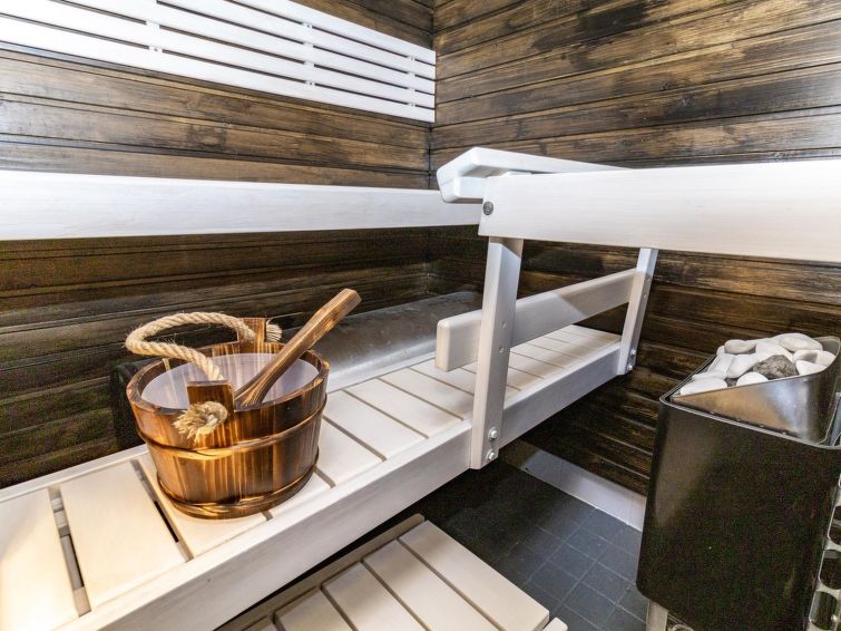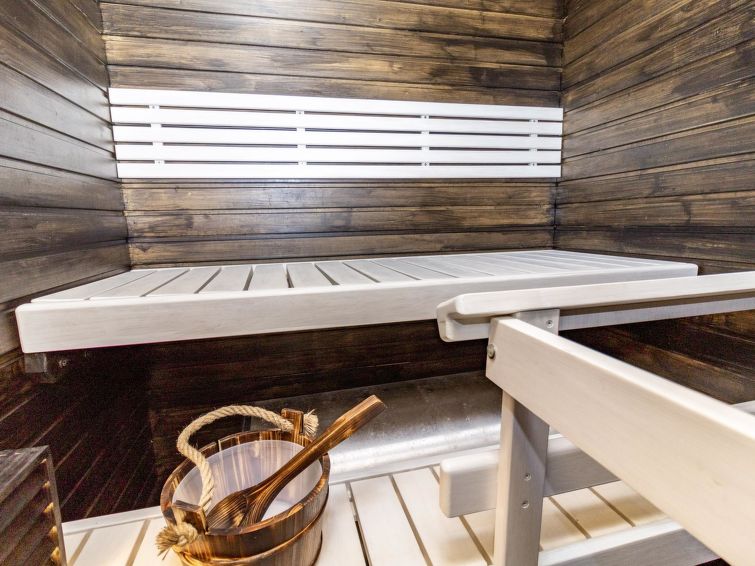 The apartment includes a well-equipped living room/kitchen and an electric sauna, complementing the holiday experience. Additional information: The nearest store is K-market Ruka Valley (please check opening hours). The closest ski lifts are Vuosseli III, RukaExpress, and the panoramic gondola Village-2-Valley, providing easy access to Ruka village on foot or by skiing. The closest restaurants are Ski Bistro and Camp Kitchen & Bar.