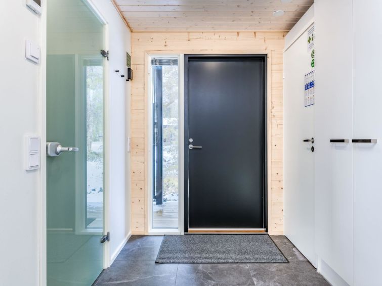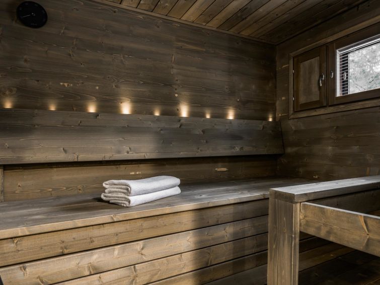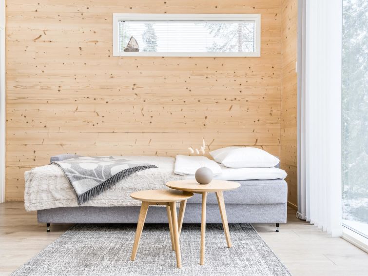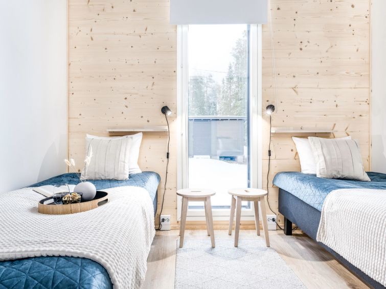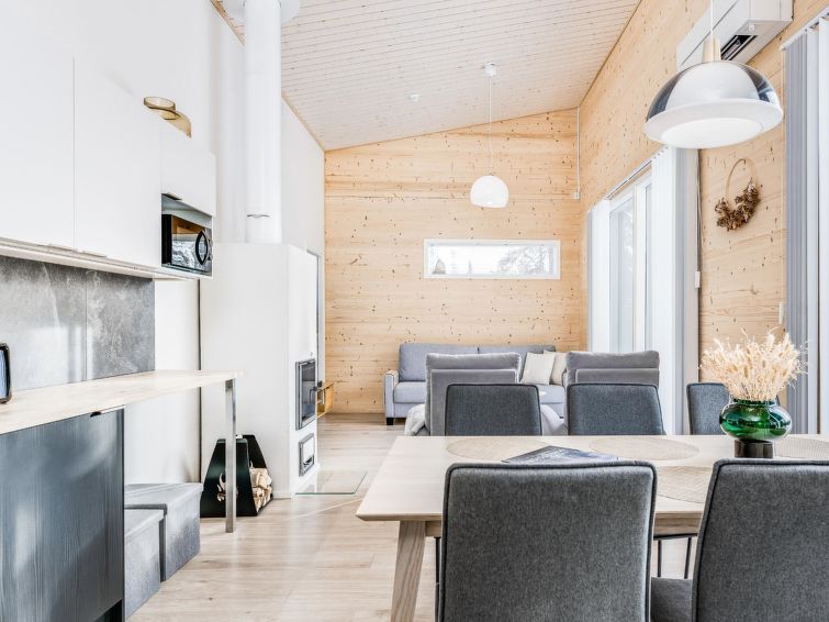 30 km to the north from Kuusamo, Vuosseli (East-Ruka) 3.4 km, Ruka village (West-Ruka, central square) 7.4 km, lake Vuosselijärvi 700 m. Log villa, built in 2021. Bedroom 1: double bed, bedroom 2: 2 beds, living room/kitchen: spreadable sofa bed for two. Electric sauna. The nearest grocery store is K-Market RukaValley, which is open during December-April. At other time the nearest grocery store is in Ruka village, distance 7,4 km.