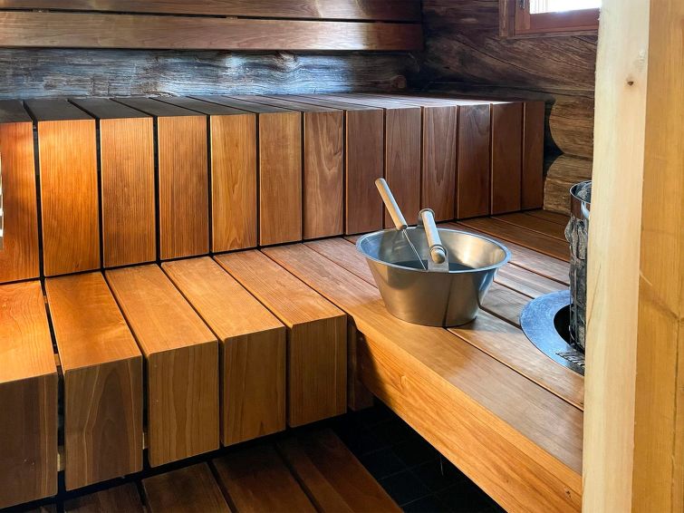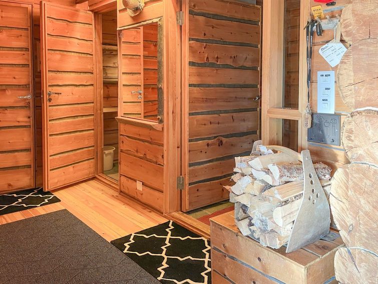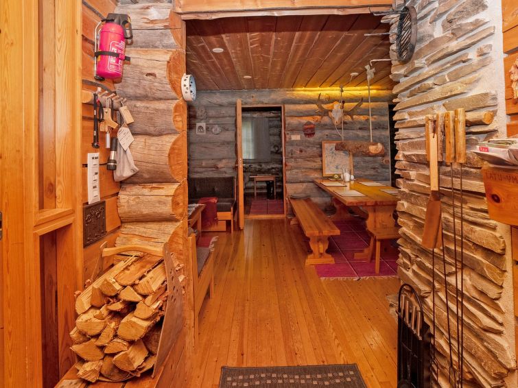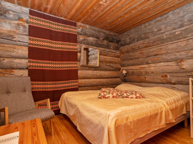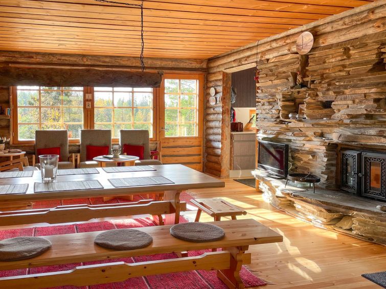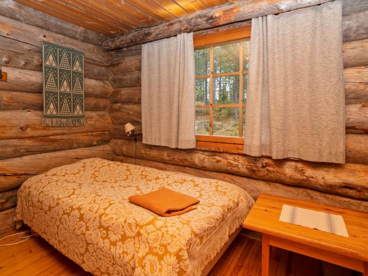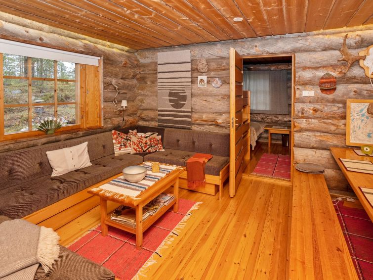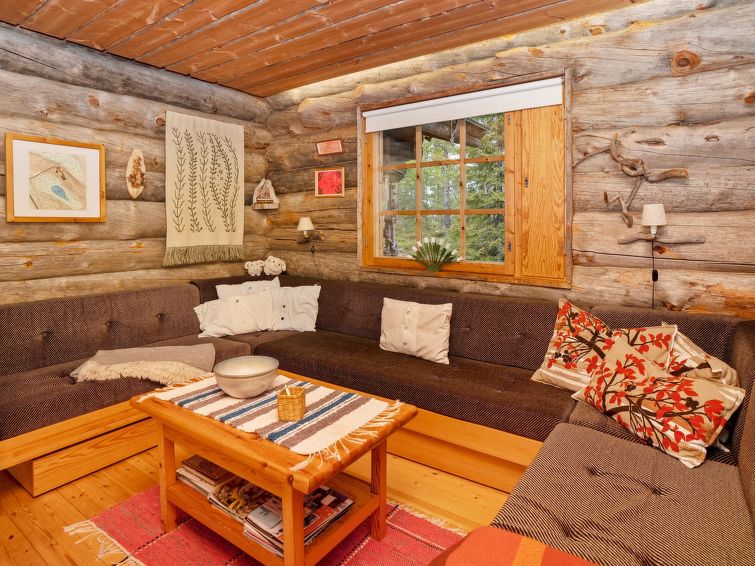28 km north of Kuusamo, Ruka 4.6 km. Log cottage, built in 1986, bedroom 1: 120 cm wide bed + bunk bed, bedroom 2: 2 beds (joined together) + bunk bed, bedroom 3: 2 beds (joined together), living room, kitchen, electric sauna. The kitchen, sauna and washroom have been renovated in autumn 2023. Cottage situated in the middle of the forest on the upper part of a slope.
