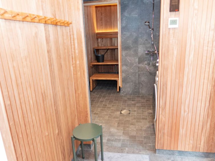 The other side of a stylish and spacious semi-detached house for 8 people, completed in 2023. Rukan Kide A is located in a quiet location, but still close to all services and trails. Ski trails are nearby, snowmobile trails can be accessed from the cottage's yard.