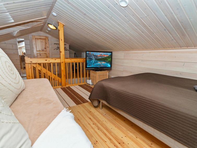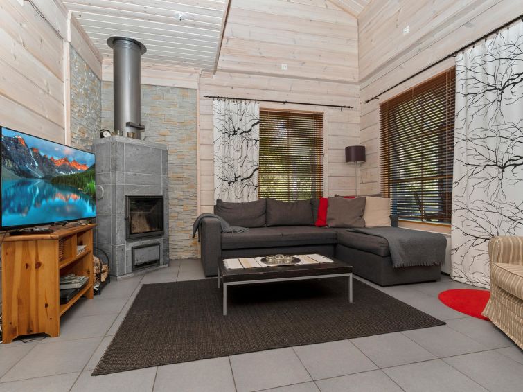 Beds: 1 double bed, 4 separate beds and sofa bed. A classy semi-detached house. E.g. soapstone fireplace, flat-screen TV with card space and automatic ventilation. Car-engine heating facilities for 2 cars. Good connections, in peaceful area, snowmobile routes, ski tracks nearby, 3 km to the slopes, 200 m to ski bus stop. Suitable for families, within walking distance to shop and number of other services.
